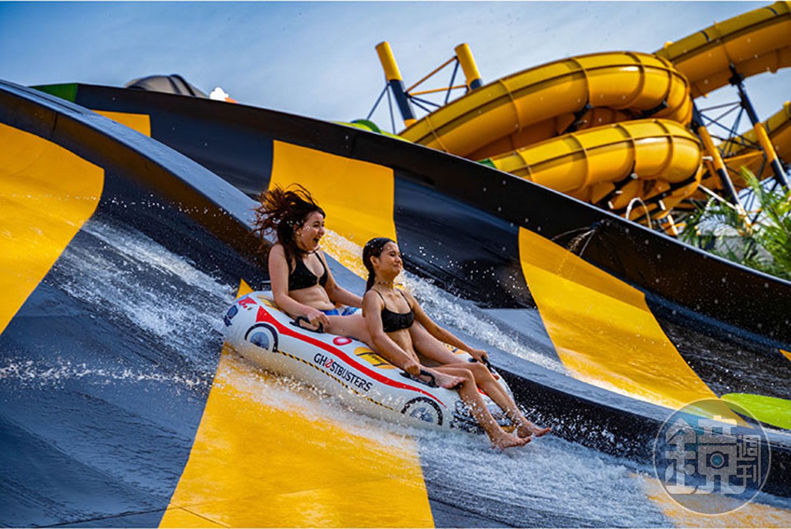 水世界將樂園的水上和陸上遊樂設施結合,打造適合全年齡層的沉浸式電影體驗,追求刺激的遊客除了有卡丁車和衝浪池可以一較高下之外,還有垂直高度110公尺的急速滑水道、《絕地戰警》賽車跑道等著心臟最大顆的勇者來挑戰!