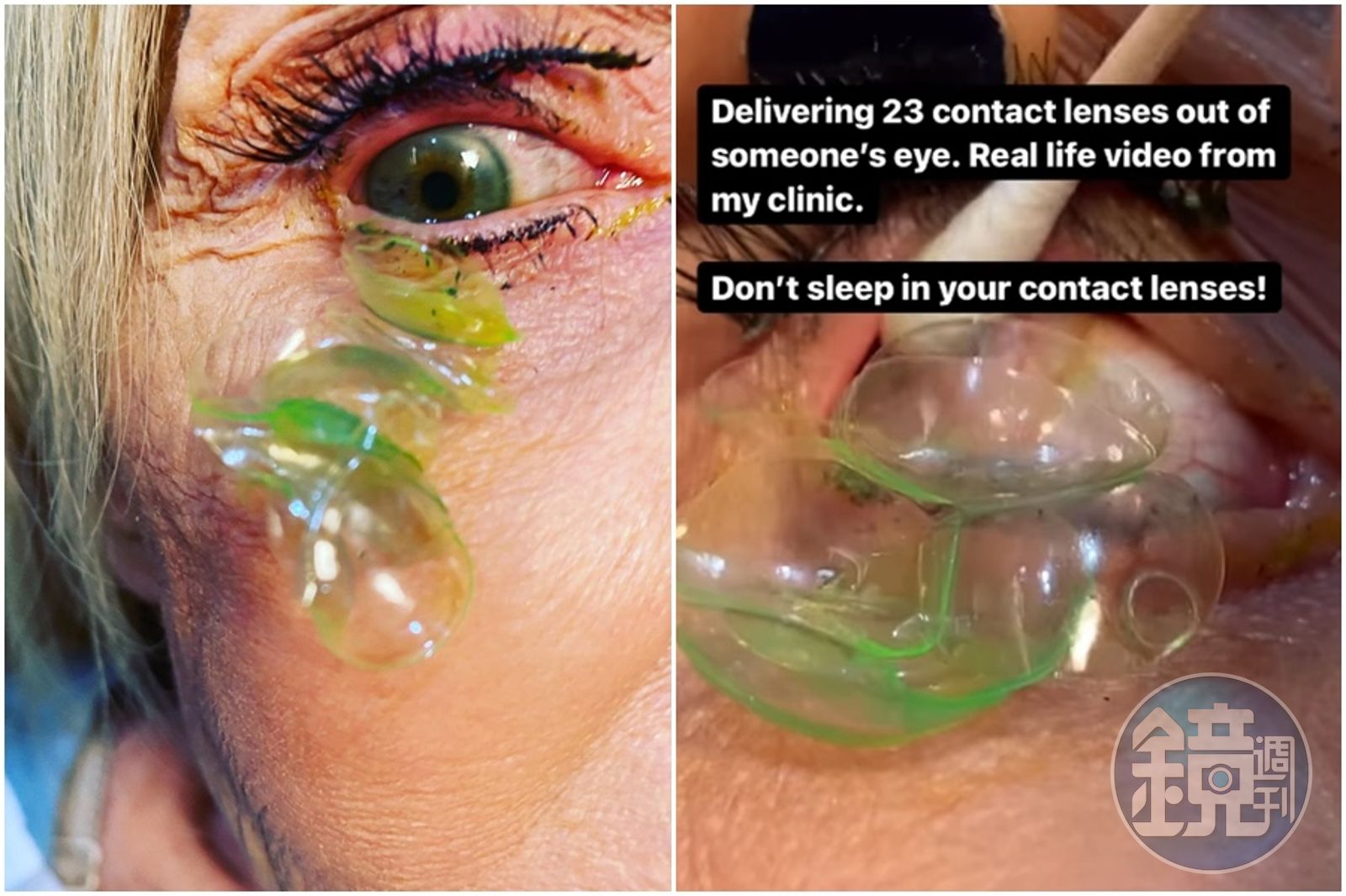 【有片】隱形眼鏡忘記拔又戴新的 醫取出23片「綠綠的」黏在一起