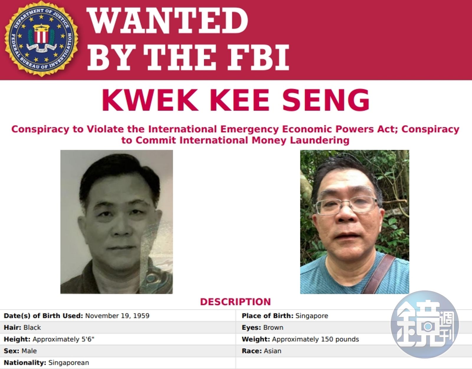 62歲的郭記成名下擁有在新加坡註冊的航運公司Swanseas Port Services,旗下油輪「勇氣號」(M/T Courageous)在2020年因違反制裁規定,於柬埔寨遭到查扣後,去(2021)年4月郭被紐約聯邦檢察官發出拘票;美國聯邦調查局(FBI)也發布郭的通緝令。