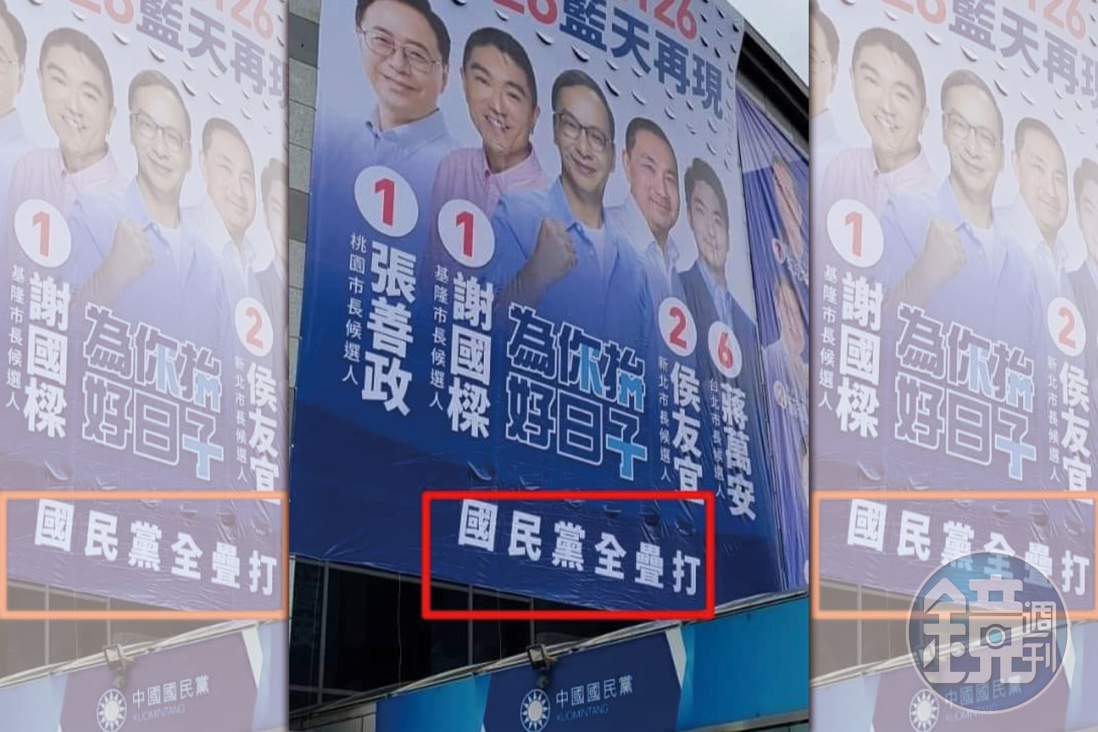 陳柏惟今天在臉書po出一張國民黨競選廣告,上面除了黨主席朱立倫在中間外,旁邊還包含1號桃園市長候選人張善政、1號基隆市長候選人謝國樑、2號新北市長候選人侯友宜、6號台北市長候選人蔣萬安,主視覺運用4人的號碼排成「1126」,提醒支持者在11月26日去投票,讓「藍天再現」。