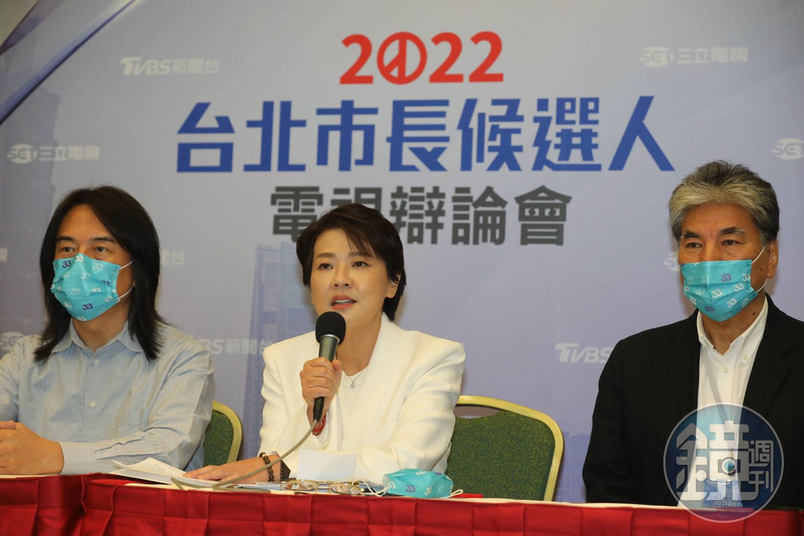 日前電視辯論會上,國民黨蔣萬安、民進黨陳時中、無黨籍黃珊珊3人互相攻防,引起大家高度關注。不過黃珊珊在台上的妝髮造型卻也引發話題,北市議員「呱吉」邱威傑也在臉書po出看完辯論會心得,認為黃珊珊「該開除化妝師了」。