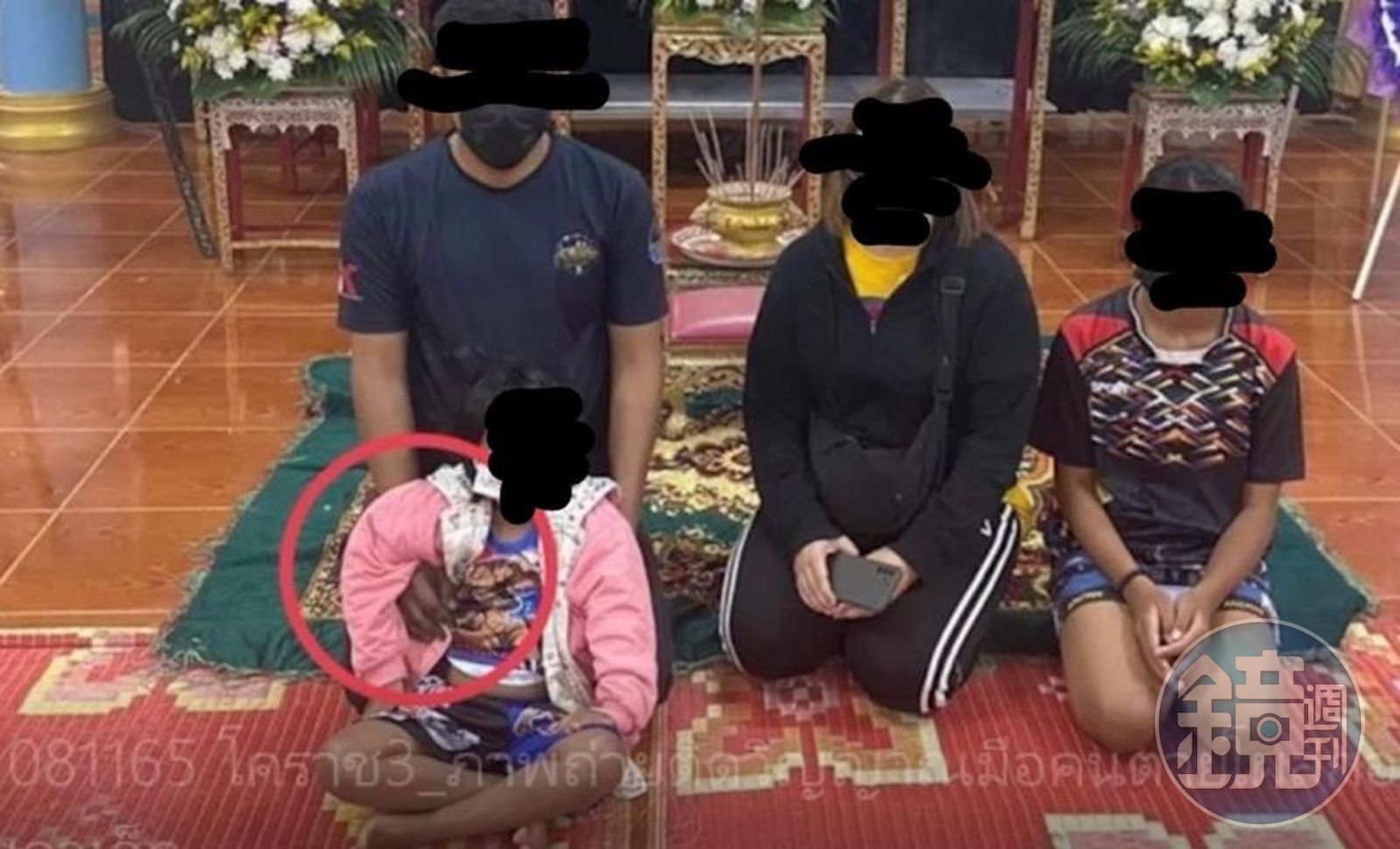 泰國網友今日熱傳一張照片,只見一名小女孩參加一名長輩的告別式,但卻有一隻「魔手」,緊緊抱住小女孩。原本網友一度以為,是小女孩身後男子的手,但這名男子卻直呼「真的不是我」。