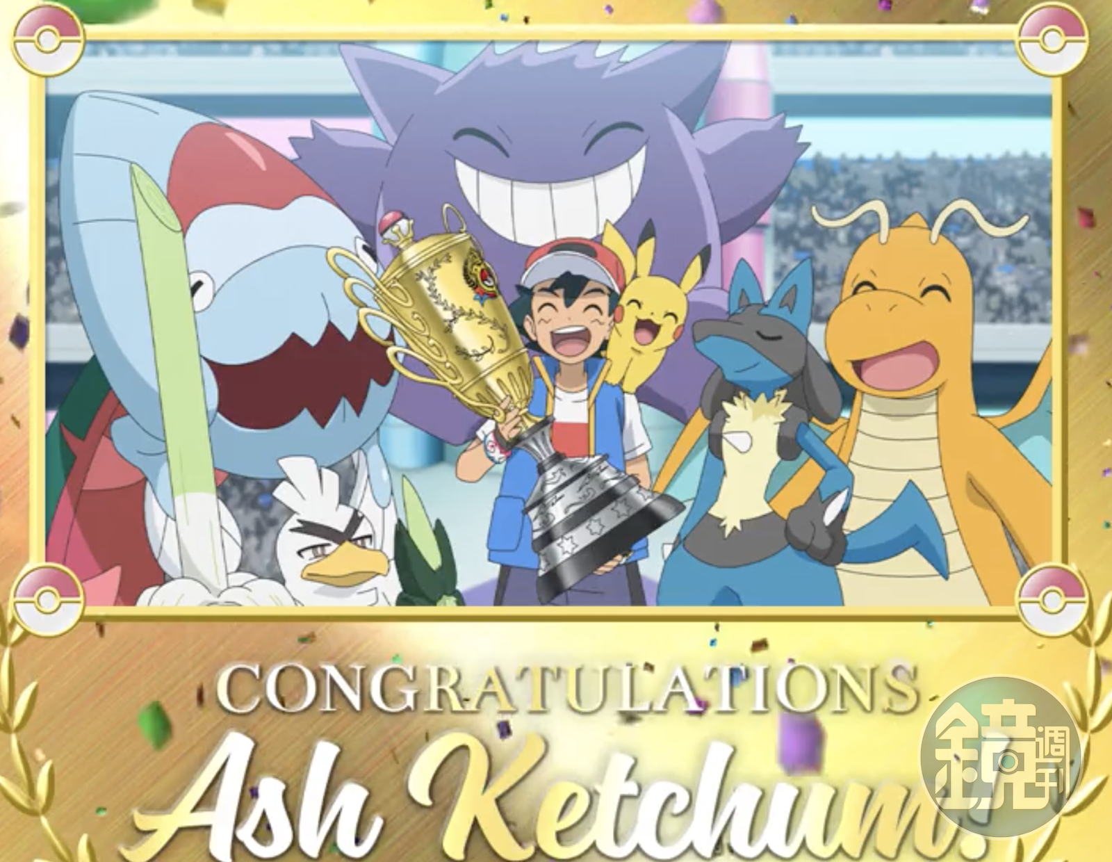 《精靈寶可夢》動畫中的主角小智,終於成功勇奪世界冠軍的寶座。(翻攝自Pokémon官方推特)
