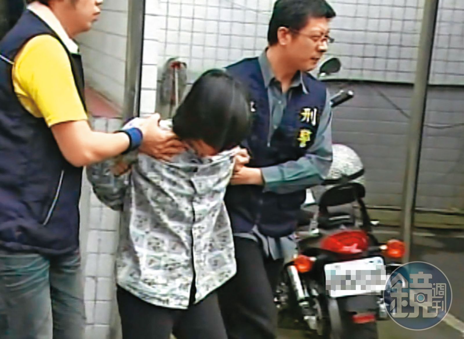 警方循線上門逮捕江女(中)時,江女十分冷靜,對犯行坦承不諱。(東森新聞提供)