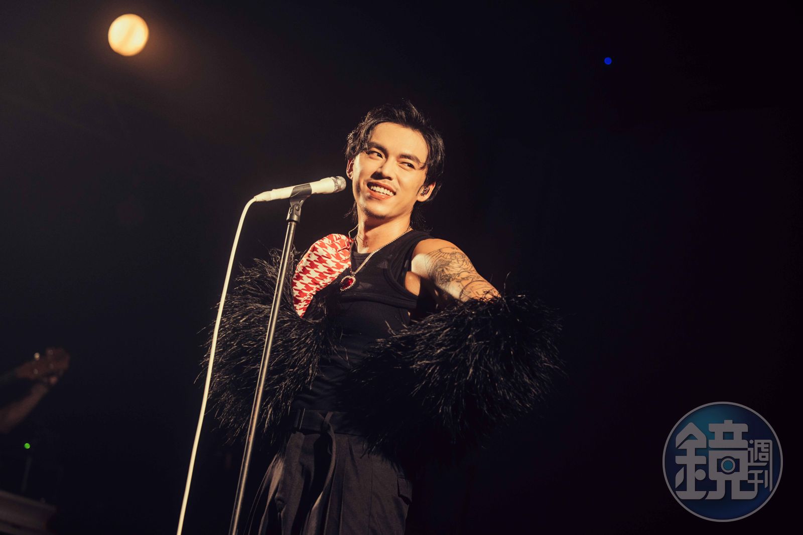 在演唱其中一首新歌〈不要靠近〉前,HUSH則面色凝重地闡述自己在籌備新作的赤裸心聲。他說面對如今的音樂市場,難免會有種「Go big or go home」的感受,接著場燈一暗,緩緩唱到歌詞中的一句「我也只剩下羽毛而已/你會珍惜還是同情」,不只呼應著第二套造型的羽毛裝,也讓人聽見創作者在交出作品時,是如此的真誠與忐忑。