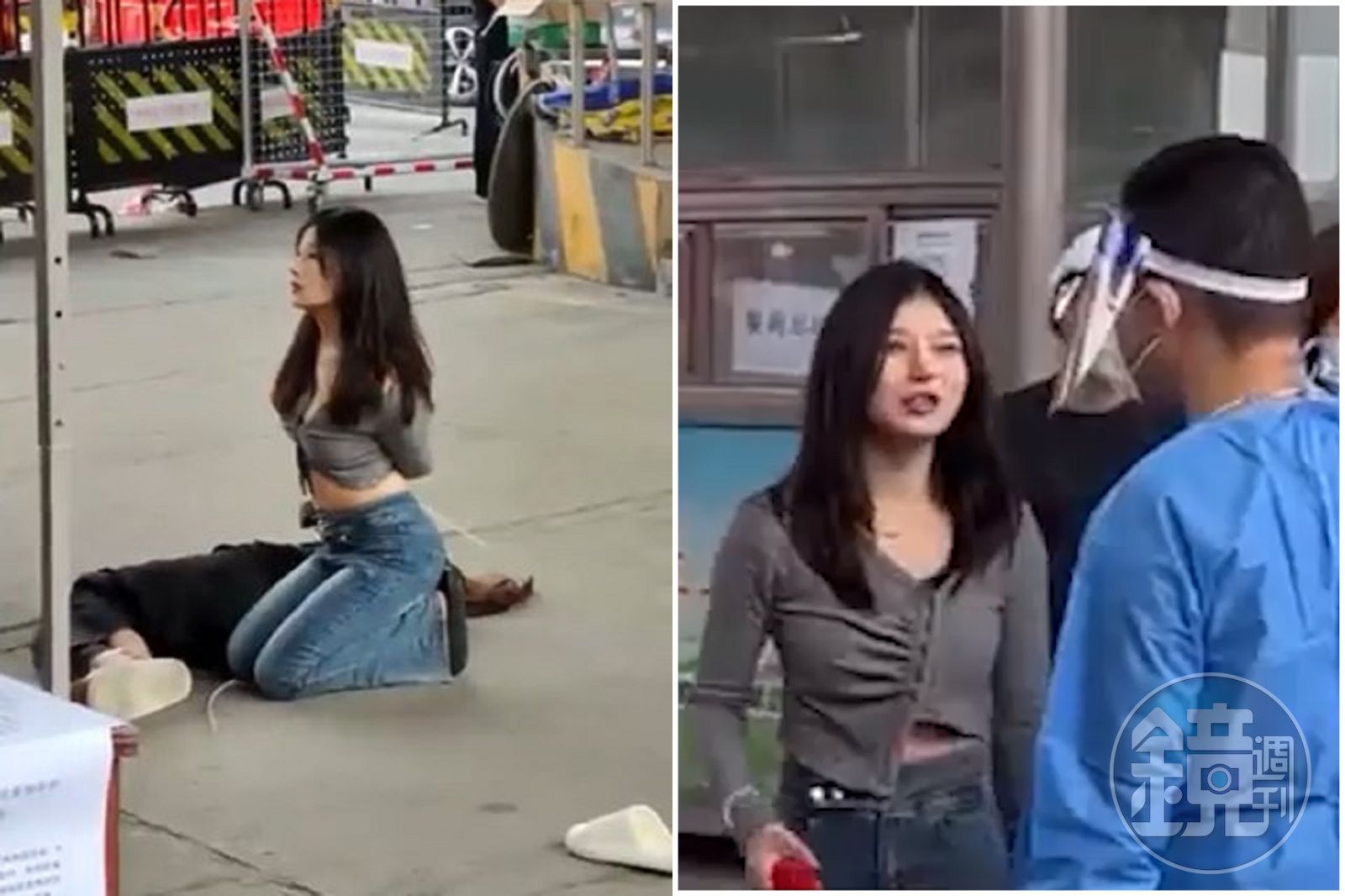 影片可見,兩名正妹疑似不滿當地過度嚴格的防疫政策,和防疫人員發生衝突,其中一名灰色上衣的女子,更是直接在現場咆哮。隨後兩人即被多名男性工作人員制伏,並在現場綑綁束縛,灰衣女被迫跪地並持續抱怨,另一名女子則是一度躺在地上,手腳都被控制。