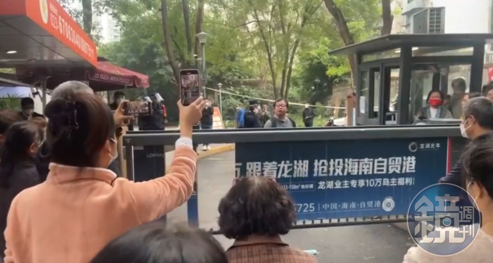 這名被稱為「重慶超人哥」的男子,因不滿政府政策「動態清零」導致社區被封鎖,在社區門口向鄰居們吶喊,影片中可見現場有多位保全、警察在旁戒備。