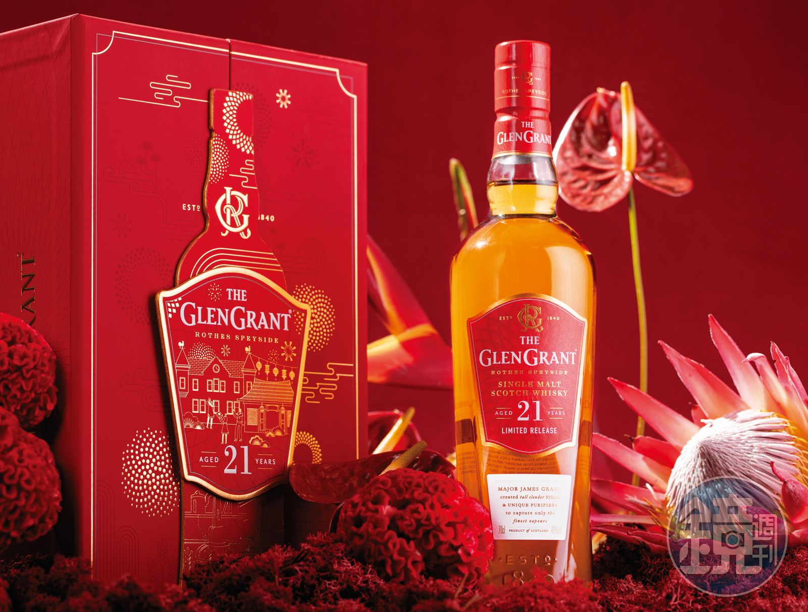 格蘭冠21年亞洲限定金兔禮盒版,台灣僅420瓶。首席調酒師Dennis Malcolm手工嚴選優質高年分Oloroso雪莉桶與美國波本桶,小批次勾兌,酒精濃度46%。