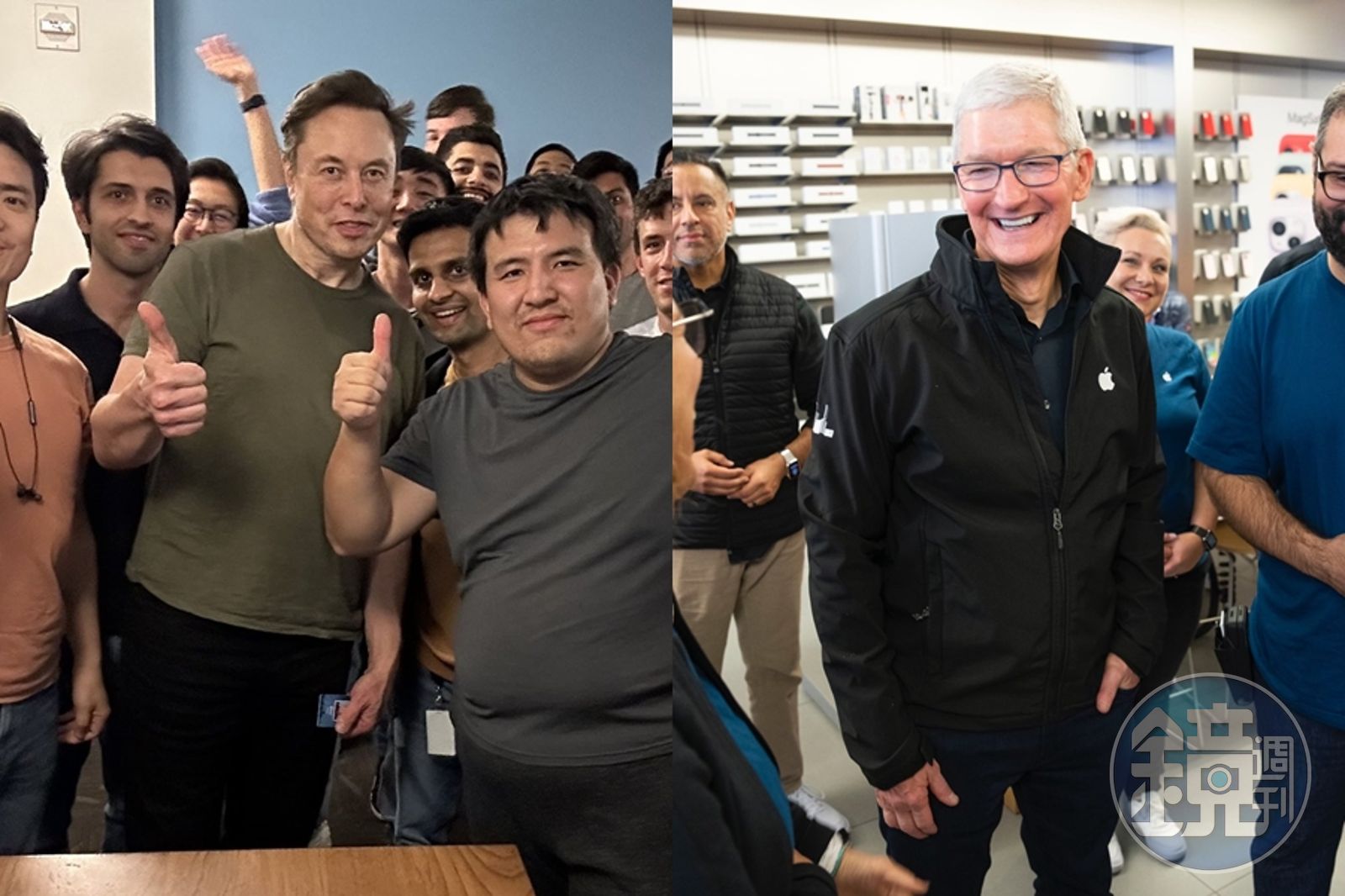 馬斯克(左圖中)一度點名庫克(右)指控蘋果要下架推特,不過近日稱是誤會。(翻攝自Elon Musk、Tim Cook Twitter)發布時間:2022.12.01 12:13 臺北時間
