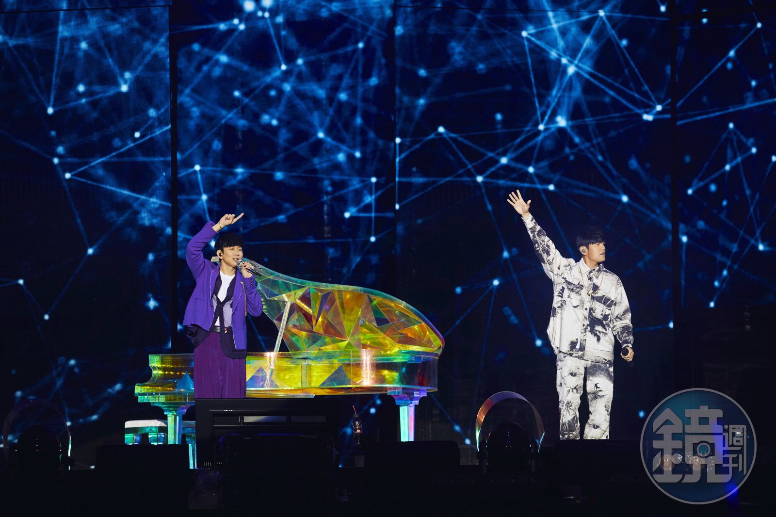 面對周杰倫的連番攻勢,林俊傑先是彈奏〈屋頂〉前奏,遭周杰倫駁回,緊接彈奏〈說好不哭〉,大家才明白林俊傑是「嫉妒」周杰倫與阿信合唱〈說好不哭〉,兩大歌王隨後深情演唱,間奏時,周董問JJ:「下次是不是要找阿信一起來唱?」JJ也沒在怕:「今天你先啊,下次再三人一起!」
