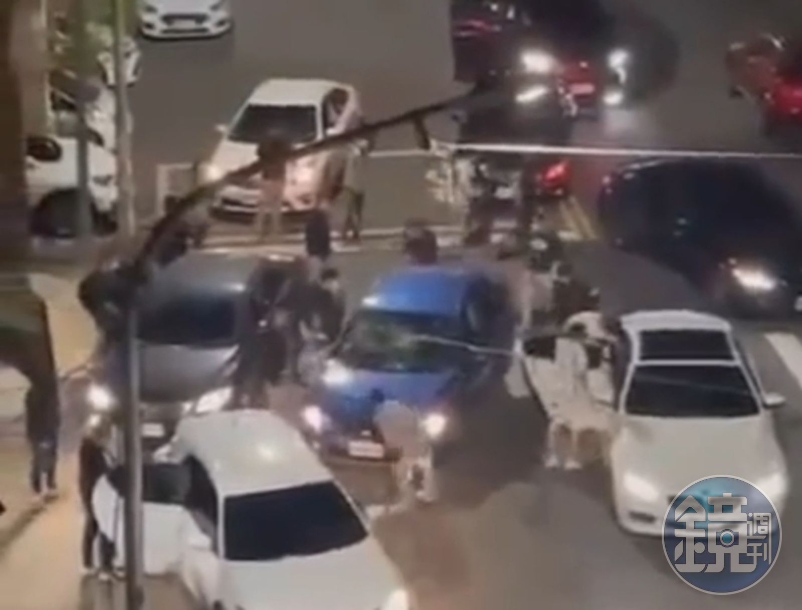 高雄昨深夜發生行車糾紛,7車圍1車進行砸車,還將駕駛押上車。(翻攝自記者爆料網)