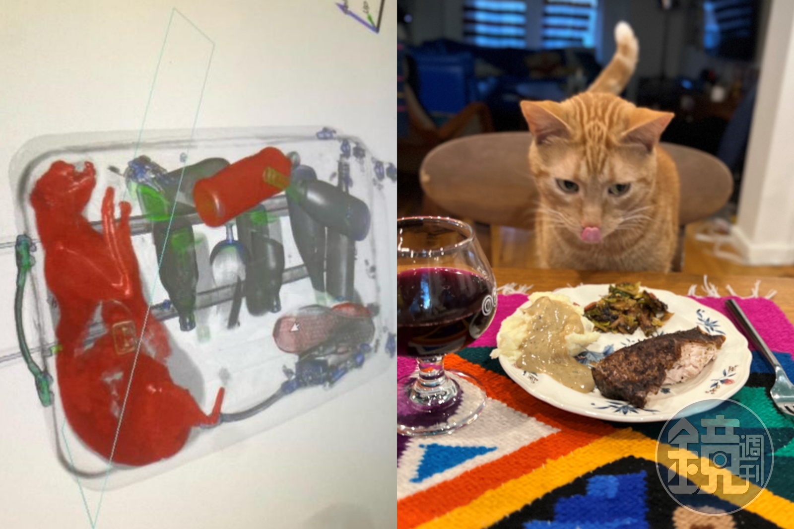 11月22日,美國紐約甘迺迪國際機場的安檢人員,在一件行李過海關的X光畫面中驚見「整隻貓」的形狀,打開行李箱後還真的驚見一隻橘貓,便趕緊通知行李的主人回來認領。