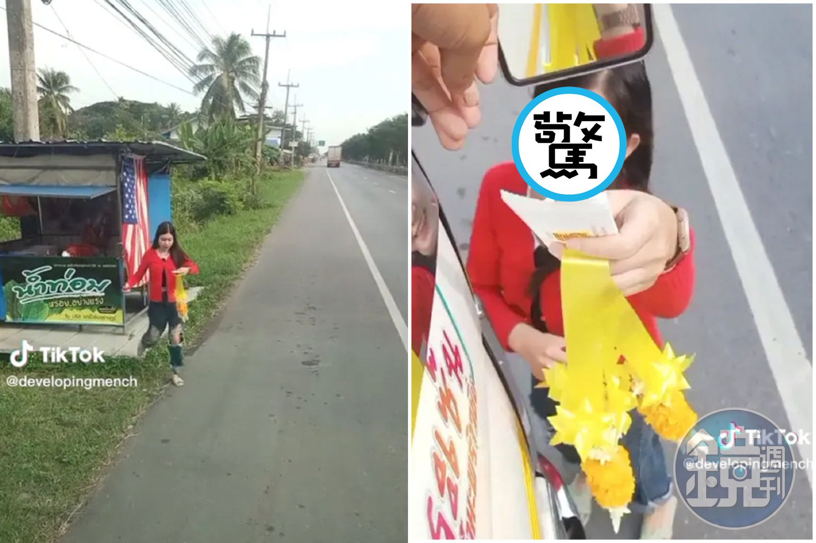 之後這名運將上傳這段影片,立刻引來眾多網友關注與討論,3天內就超過16萬人次點閱影片。不僅如此,正妹本尊也前來留言,表示自己受到大家討論,讓她感到有點不好意思。另一方面,不少網友也在問:「這到底是哪個路段?」據《Sanook》報導,攤子的地點位在班武里府通往曼谷的公路上,因此有不少網友直呼:「我準備衝了!」、「我也要買花圈。」、「真的讓人戀愛了。」、「萌萌的,好可愛!」