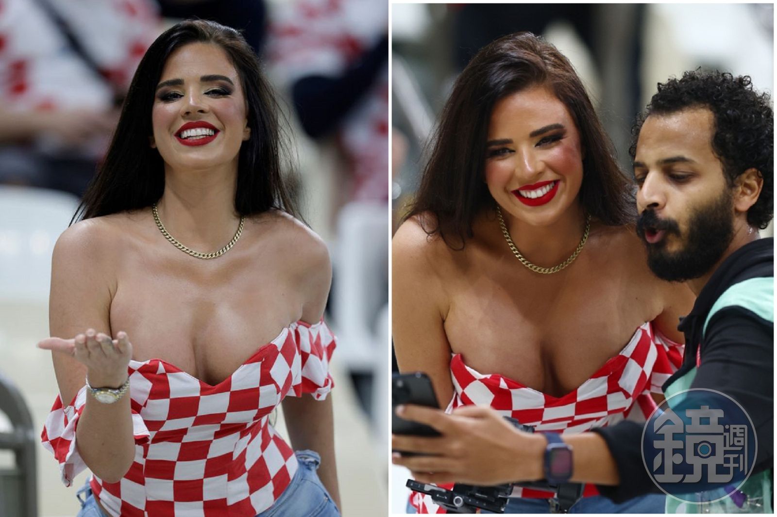 卡達因為信奉伊斯蘭教,賽前就曾「警告」球迷們勿穿著過度暴露,以免觸犯當地法律而被捕。不過伊凡娜沒在怕,為了「應援」自己的母國克羅埃西亞,只要有克羅埃西亞出賽的場次,她一定是「福利大放送」,穿著爆乳裝登場,下半身不是露出美腿,就是超緊身褲。
