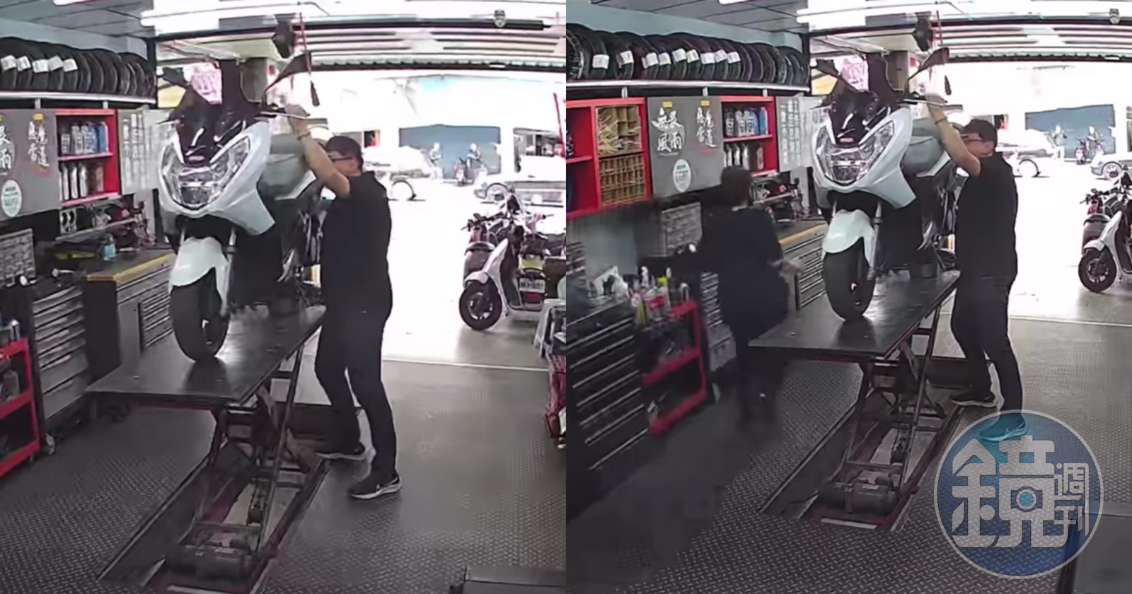 花蓮一間機車行林姓老闆下午在臉書上傳一段監視器畫面,機車行內有台機車被架高正在維修,但就在此時發生地震,店內物品左搖右晃,林姓老闆第一時間不是跑到室外,而是立刻上前用雙手固定機車,就怕客人的機車摔落受損,他也自嘲「不愧對今年 花蓮模範勞工獎」。
