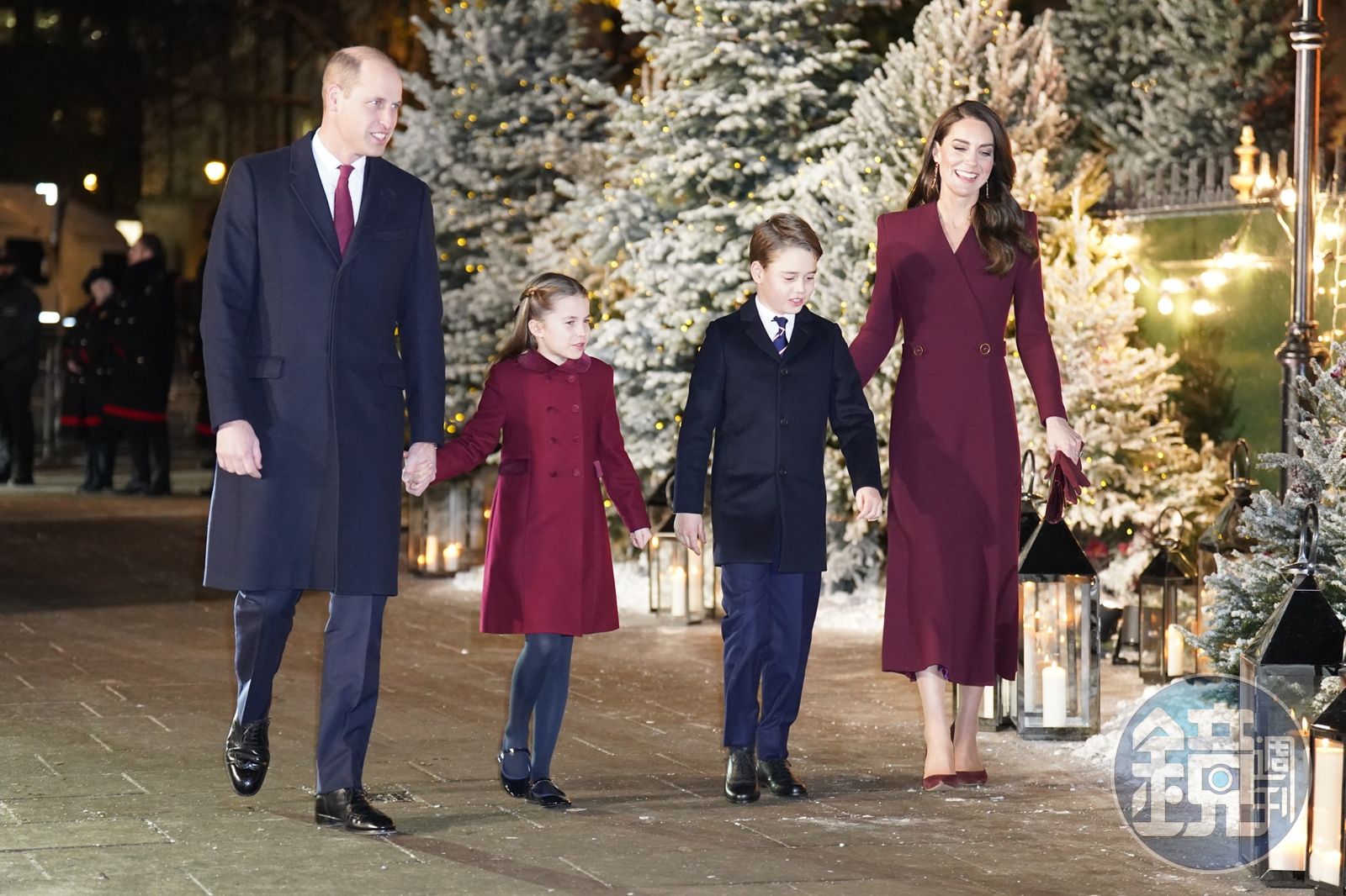 王室耶誕音樂會15日再倫敦西敏寺大教堂舉行,旨在紀念已故女王伊莉莎白二世,英王查爾斯三世、王后卡蜜拉等人都盛裝出席。威廉王子和凱特王妃牽著一雙子女手牽手、心連心進場,小王子和小公主的裝扮,完全就是父母親的迷你版。