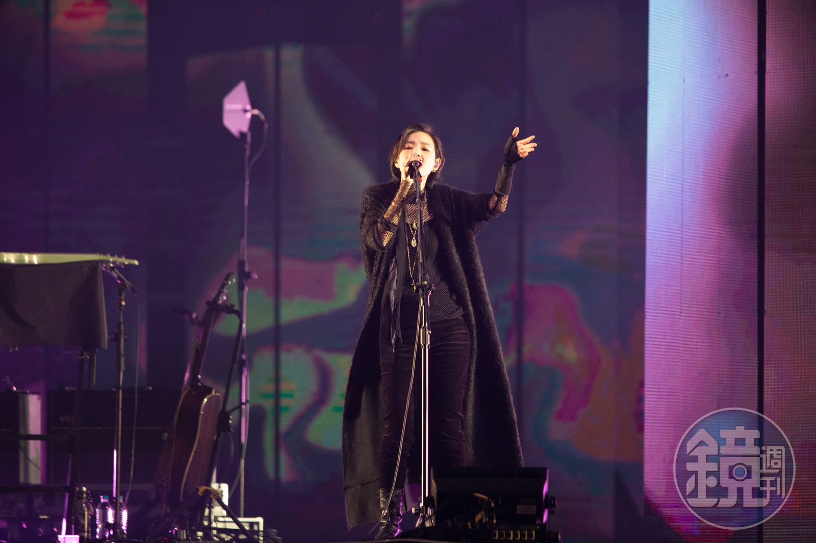 安溥「潮水箴言」以大量文學作為文本,採用高質感的音響、燈光,以「當代藝術展」的概念來製作。在不規則的山形舞台上,全場漆黑靜默,安溥的手寫字躍然於LED螢幕上:「惡夜暴雨來時,在一盞燈熄之前,牆對我訴說,是塗鴉和剪貼讓我殘破⋯⋯妳為什麼要創作,我想起我也問過,若沒有你,何來一場天地,和這星球上人盡皆知的,它的自圓其說。」接著她穿著一襲黑色女巫感特別訂製落地長袍,以清澈的嗓音劃破寧靜,帶來序曲〈並不〉。