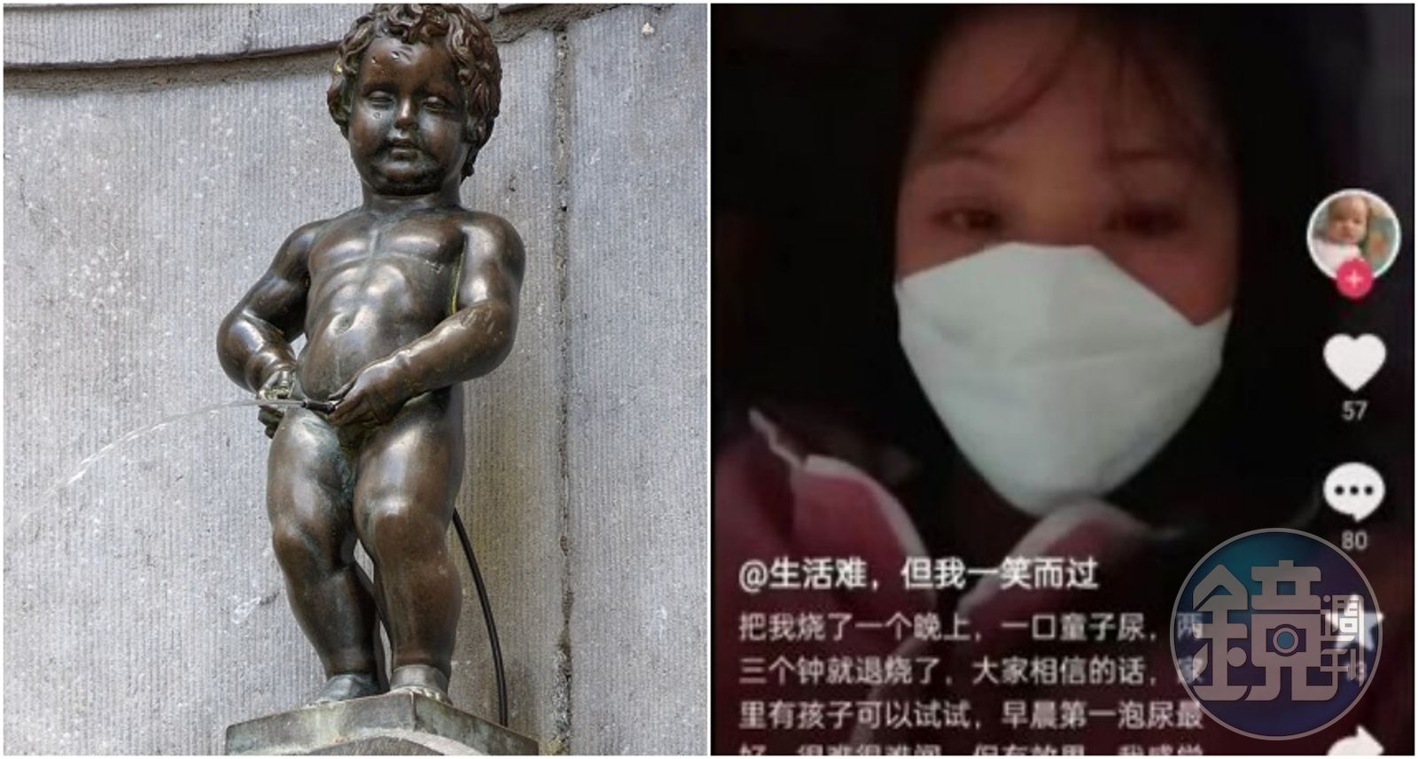 這名人妻日前在抖音PO影片,內容提到自己發燒了整個晚上,最後受不了選擇喝了一口童子尿,沒想到二、三小時後就退燒了,她還勸其他生病的網友,如果家裡有小孩可以試試看,「很難很難聞,但有效果,我感覺我的喉嚨都快熱熟了,喝了一口尿,三個鐘頭就退了。」
