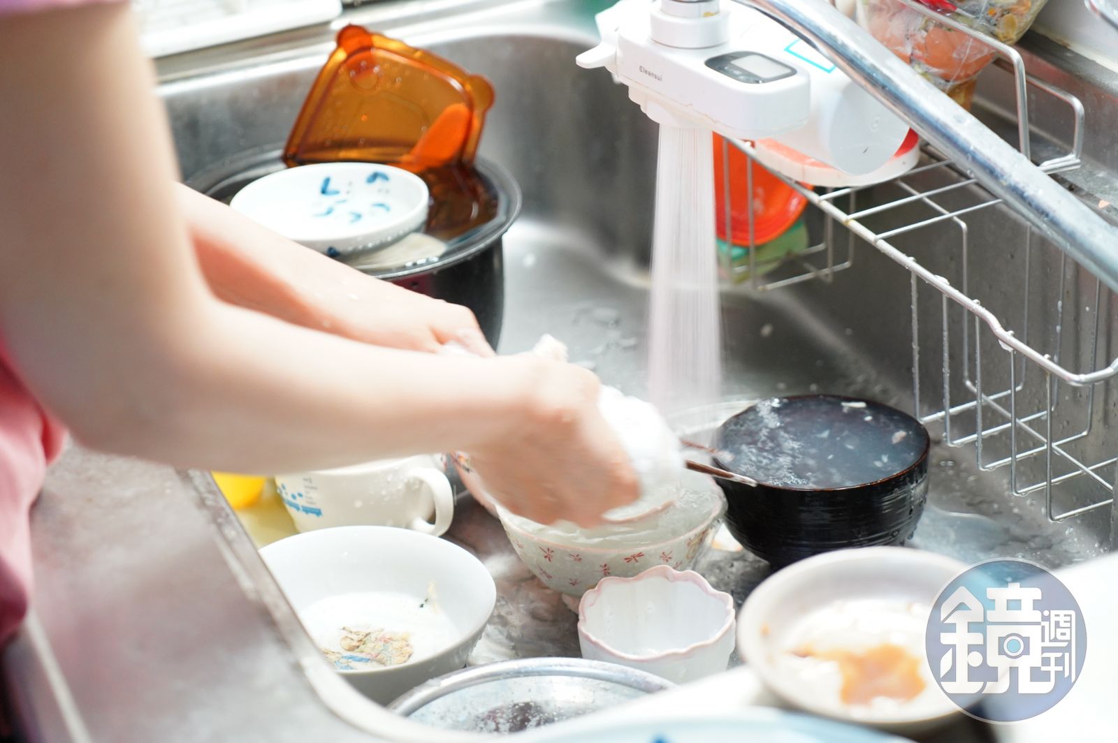 2.洗碗是大工程:14口大家庭一餐下來的碗盤數量十分驚人,水槽堆積待洗的碗盤讓人望之卻步,光是洗碗都會洗到腰痠,嫁進來之後才知道碗筷是由大家輪流洗,一起分擔。