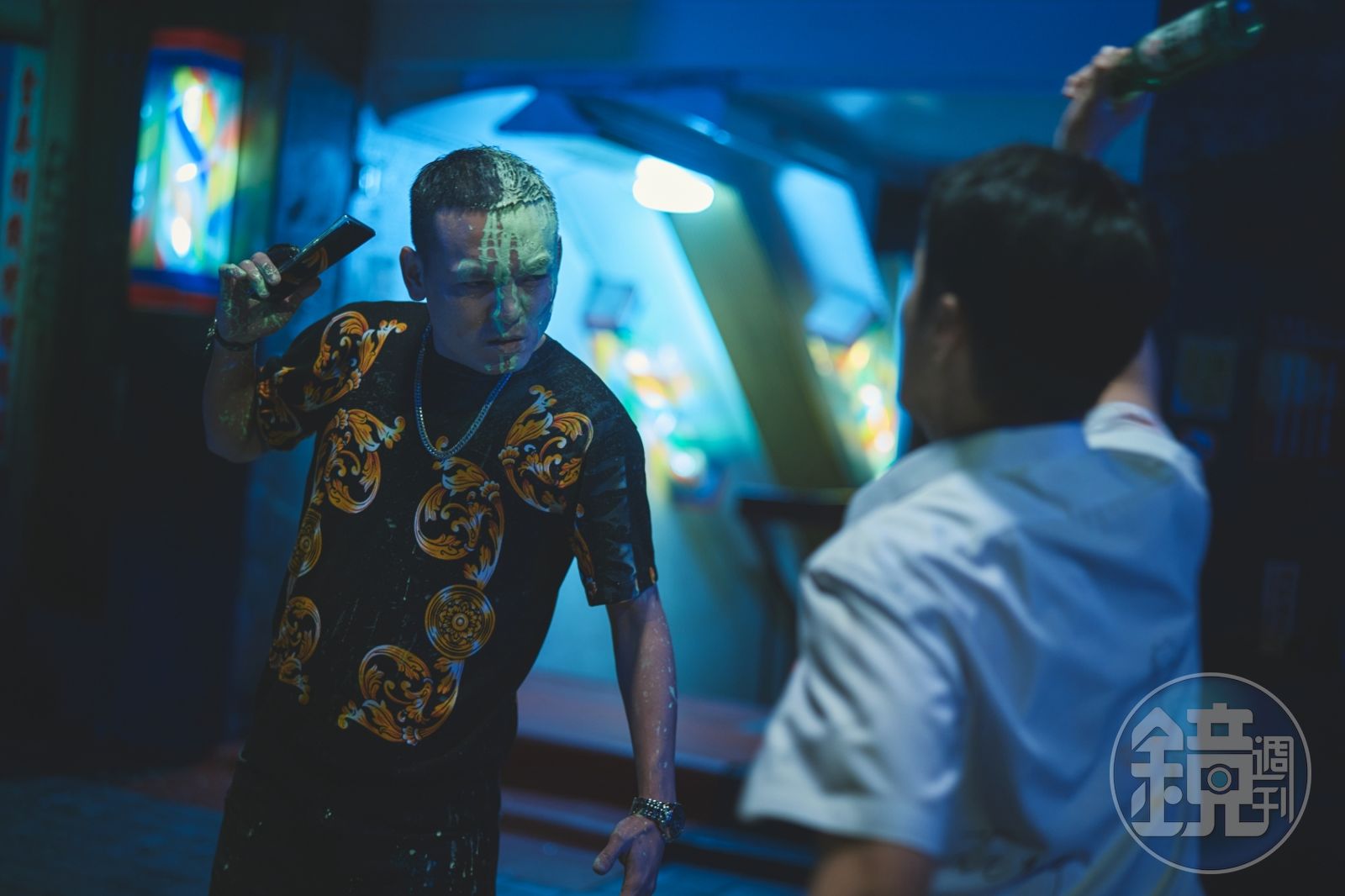 玖壹壹春風重量級客串《黑的教育》,慘被潑漆還被用酒瓶砸頭。(禾豐九路提供)