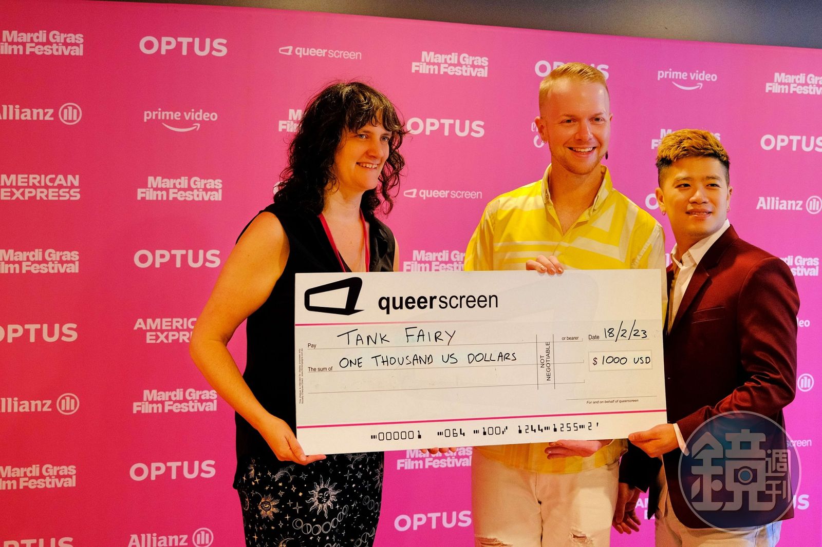 雷利領獎致詞時,除感謝主辦單位酷兒螢幕,也特別感謝文化部與駐雪梨辦事處協助參展,以及台灣國際酷兒影展推選代表台灣參賽。他一一唱名感謝演職人員造就本片,並邀剛從機場趕到的台灣籍先生秦國芳一同受獎,同時向觀眾說「沒有我的先生就沒有這部片!」獲得現場一片掌聲。