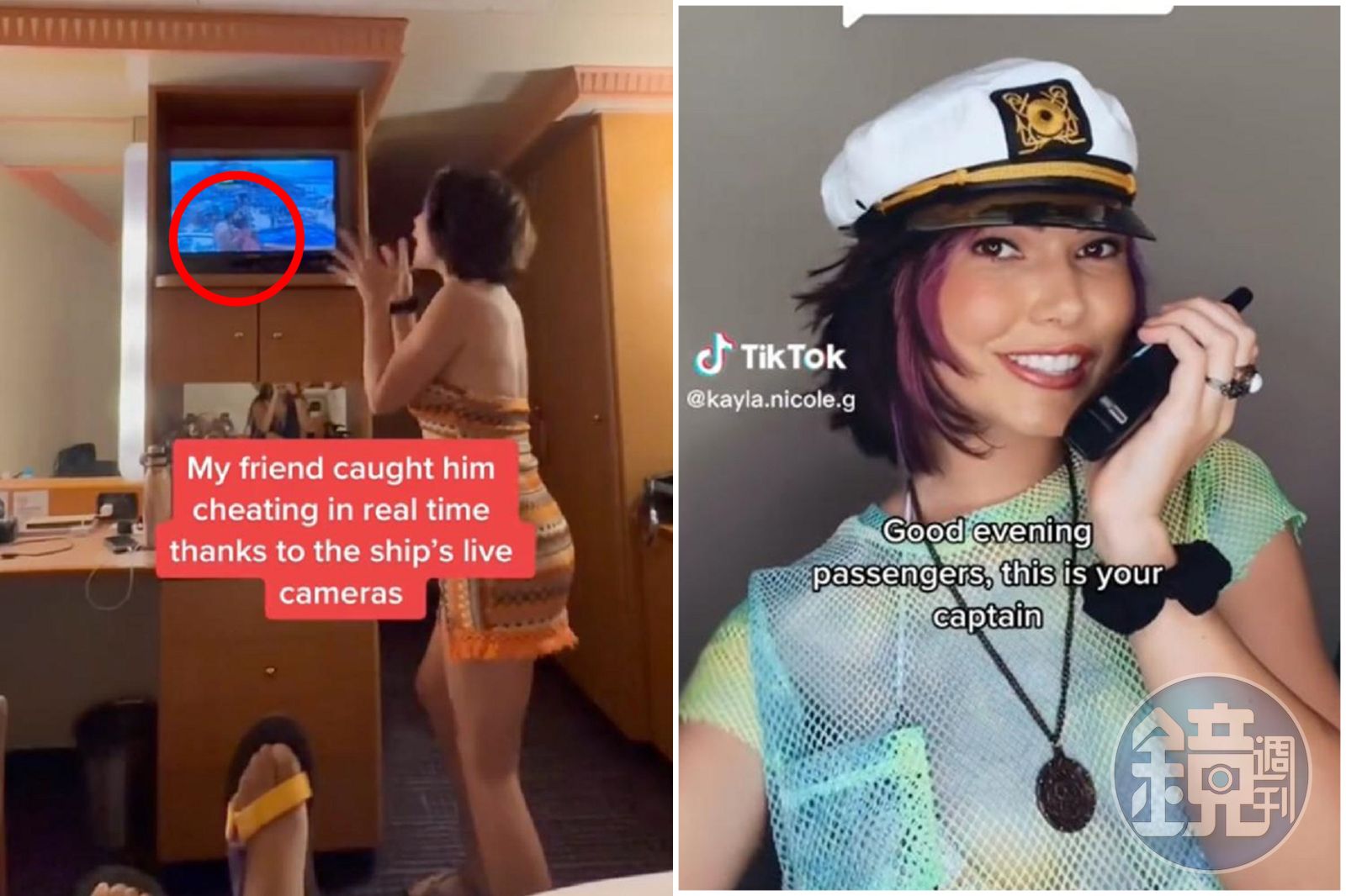 不僅如此,男友和另外一名陌生女子直接在甲板上演親密舉動,即時影像的鏡頭更是拍得一清二楚。嘉德娜看到這一幕,不禁激動大叫:「那個女的是誰?」、「歐買尬歐買尬!」之後嘉德娜急忙地跑出去,但隨後她又拿著講機直呼:「這裡有個911緊急情況,請大家緊急到上甲板集合!」這時即時畫面也顯示,男友立刻倉皇逃跑。後來嘉德娜又上傳一段影片,表示在她高喊「有緊急狀況」之後,就有救生艇靠近郵輪,還附上「想把他丟下去」的文字。