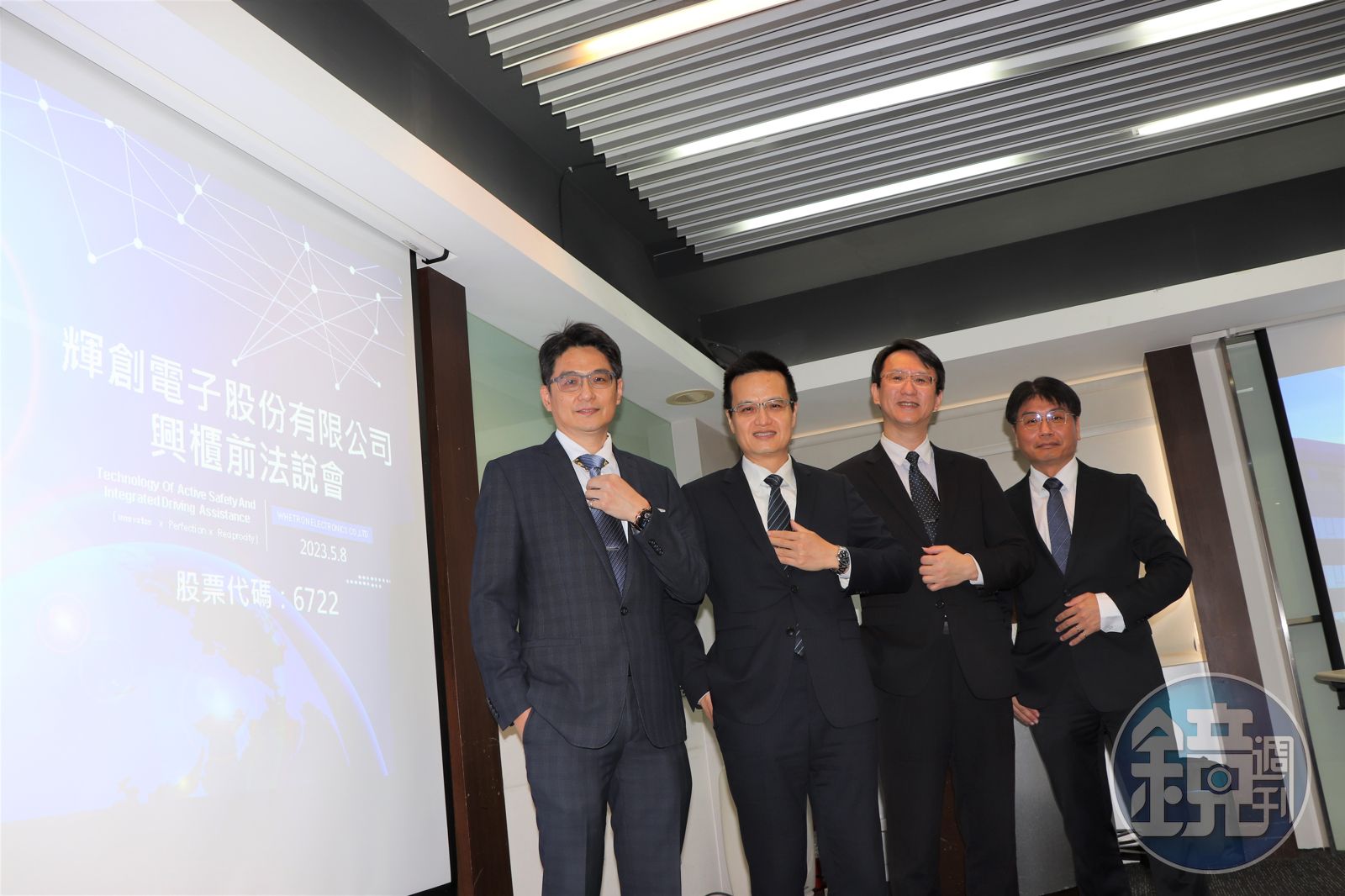 ADAS 感測系統知名台廠輝創電子(左二為總經理江世豐)預計將於明(11)日興櫃掛牌。(富邦證券提供)