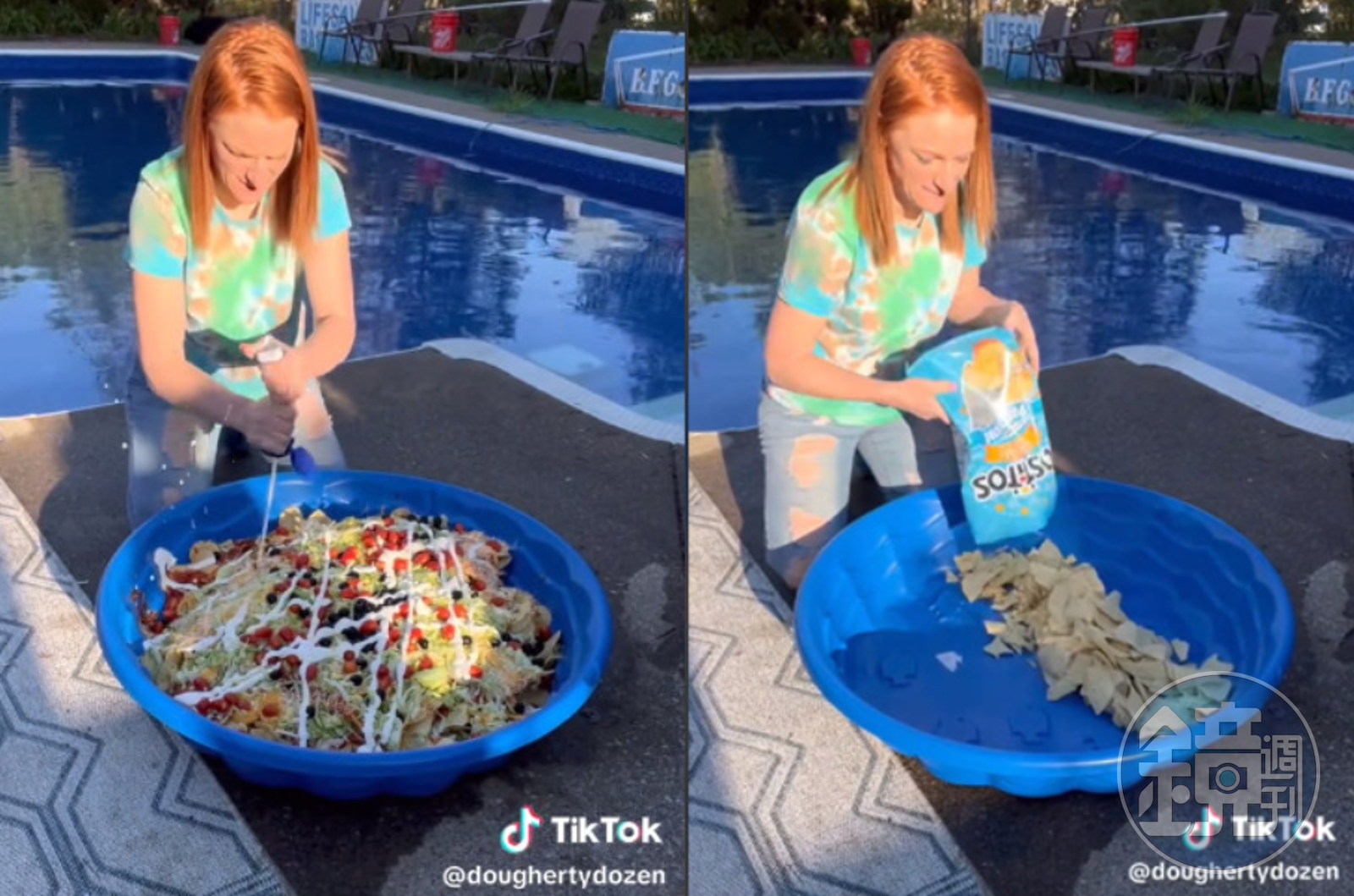 艾莉西亞是一名知名的網紅,她時常在TikTok上分享自己一家14口的生活點滴,擁有高達600多萬的粉絲關注。近日她在TikTok上發布了一段影片,展示了她用水盆餵食小孩的畫面,影片中可見她將玉米片、碎肉、奶油醬等食材倒入一個藍色的澡盆中,把食材拌在一起後,讓孩子們拿著湯匙或叉子直接從水盆中挖著吃。