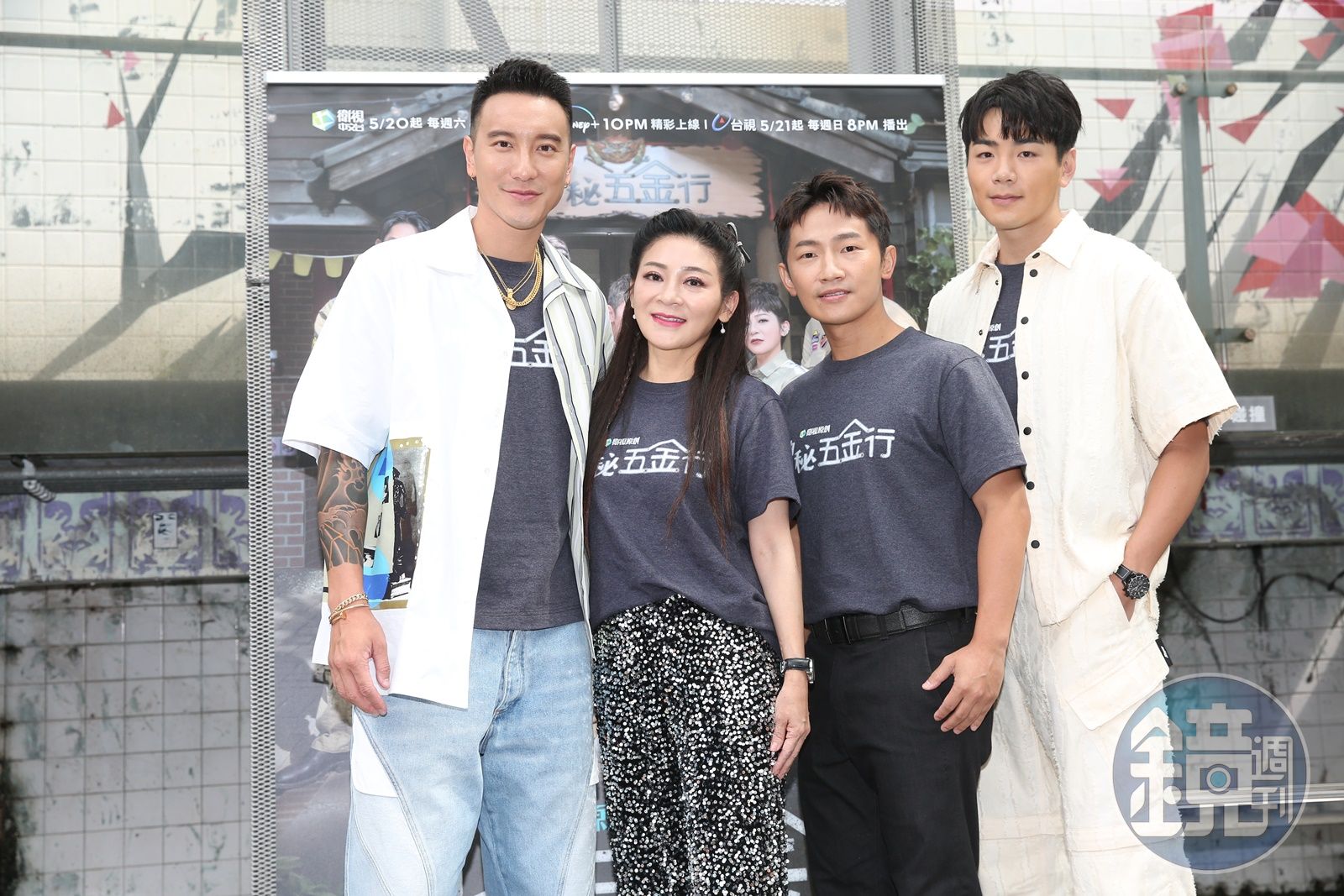 王陽明(左起)、王彩樺、蔡昌憲、禾浩辰出席《神秘五金行》試片會。發布時間:2023.05.19 19:01 臺北時間