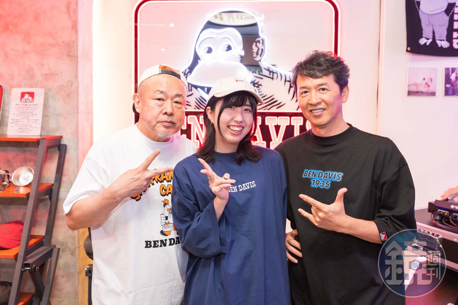 米元康正西門町慶生 BRAND T.跨界聯名辦攝影展,左起米原康正先生、葵小姐、BEN DAVIS日本社長赤松先生。(Brand.T提供)