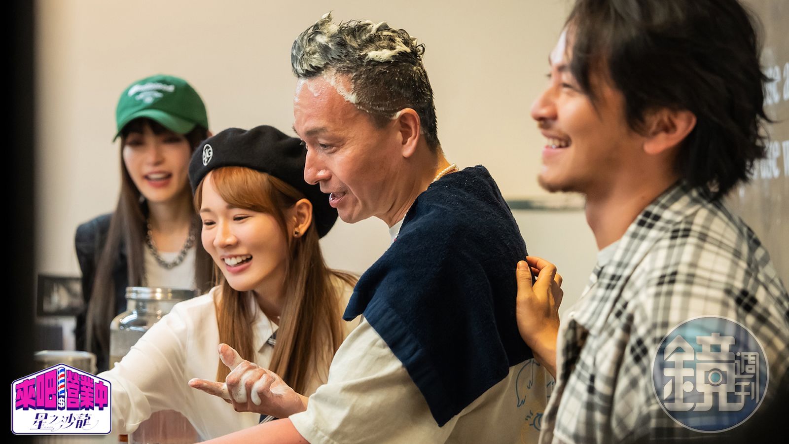 小鐘最後甚至被叫去吧台洗手槽沖洗,讓他大喊:「有沒有把老藝人當人啊?我到底幹嘛來?」樂得謝依霖表示:「小鐘哥你太愛(支持)林莎了」,楊銘威補充:「應該要原地結婚!」小鐘則開玩笑說:「這至少要親一下吧?」逗得林莎急忙跑開並表示:「跟鐘哥感情太好了啦!有他在就很好笑,也謝謝鐘哥來支持我們!」