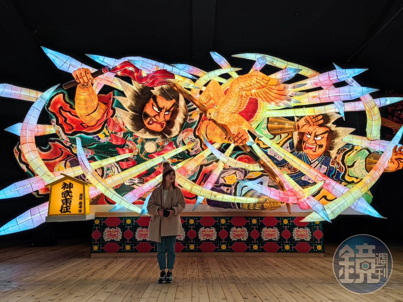 不少台灣旅客都曾經入住過青森屋,此篇就從最新的項目開始介紹。2022年4月疫情好不容易進入尾聲,青森屋便宣布全新的「陸奧祭典屋」開幕啟用,並規劃全新的「青森四大祭典劇場秀」,從布滿竹子元素的引導廊道進入,兩旁是日本睡魔燈籠師「立田龍寶」設計的睡魔木剪影作品,延伸向上至整個樓梯,直到劇場入口處是另一位睡魔燈籠師「竹浪比呂央」作品「紀朝雄」,一旁由另一位燈籠師「手塚茂樹」燈籠師製作的白燈籠「雪中青森天鵝及兔子」象徵照亮前往劇場的道路。