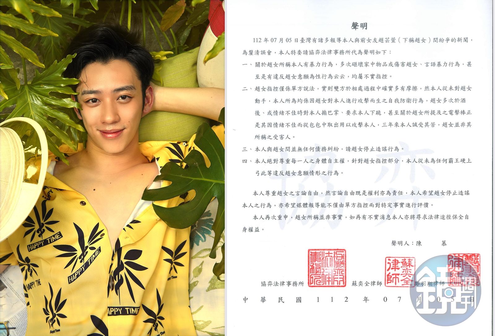 陳慕同時寫道:「一直以來,每段感情我都是真心付出,並且對我來說都是刻骨銘心的一段回憶,只是很可惜我和趙芸萱(趙芸)小姐,終究無法走到最後,交往過程當然有甜蜜也有摩擦,分開也希望能好聚好散。」