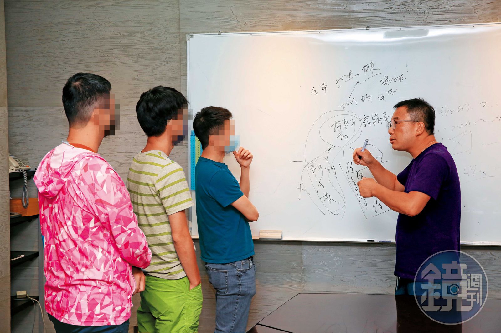 住宅週報社長陸敬民(右)向受害人說明可能的詐騙手法。
