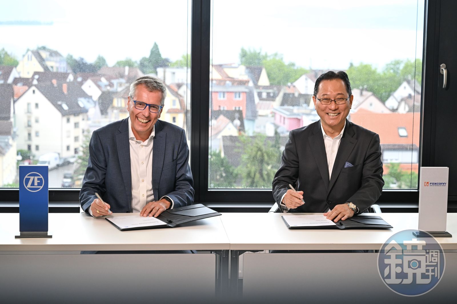 這次簽約儀式是由鴻海電動車事業策略長關潤前往ZF集團德國總部代表劉揚偉簽約,董事長劉揚偉則透過連線觀禮並致詞表達對這項合作案的重視。