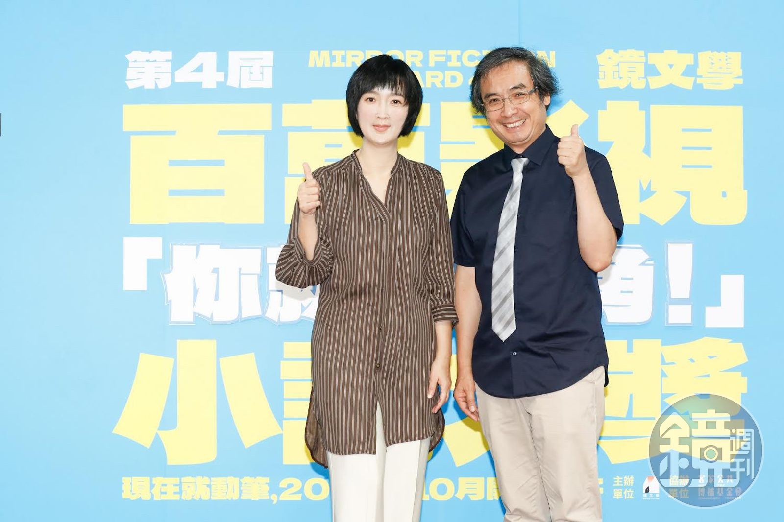客傳會董事長陳邦畛(右)攜手鏡文學總經理暨總編輯董成瑜(左),今年加碼提高鏡文學百萬影視小說大獎獎金,尋找好作品。