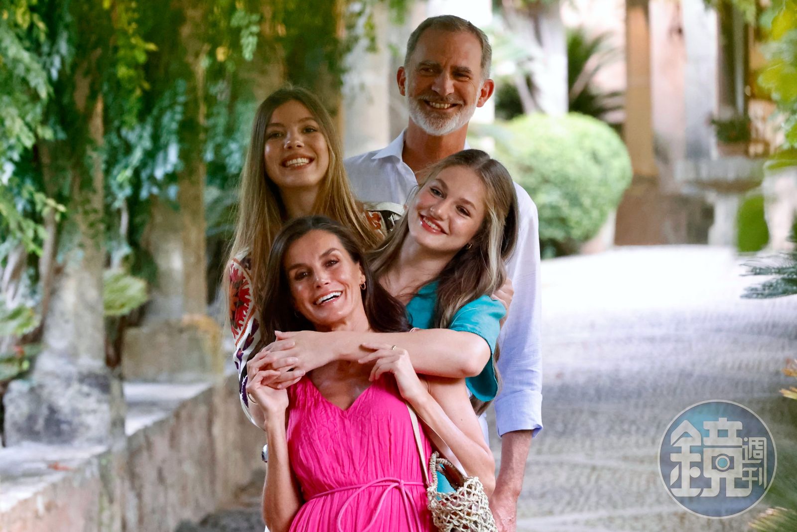 西班牙國王菲利佩六世(King Felipe VI)與蕾蒂希亞王后(Queen Letizia)2名女兒──17歲的萊昂諾爾公主(Leonor)與16歲的索菲亞公主(Sofia)。一家四口昨(7月31日)展開夏季之旅,到西班牙馬略卡島度假,並留下美麗倩影。