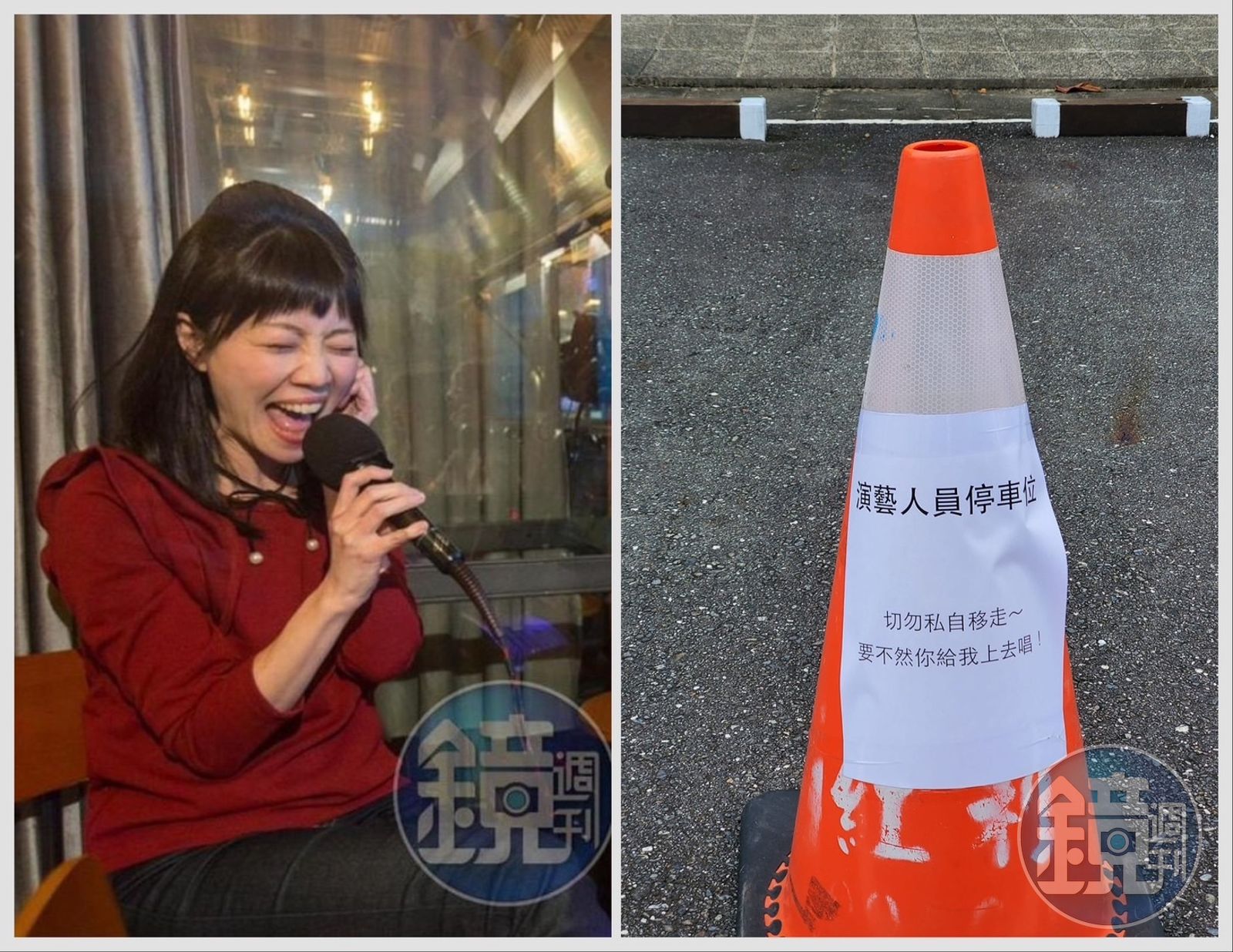 日前一名網友發現,某處的戶外停車場的車格上擺著一排三角錐,上頭白紙公告寫著「演藝人員停車位,切勿私自移走~要不然你給我上去唱」,沒想到照片立刻引起討論,其中最吸睛留言就是立委高嘉瑜竟然也搶著報名「在哪?我馬上到」,留言一出網友紛紛蓋樓勸退。