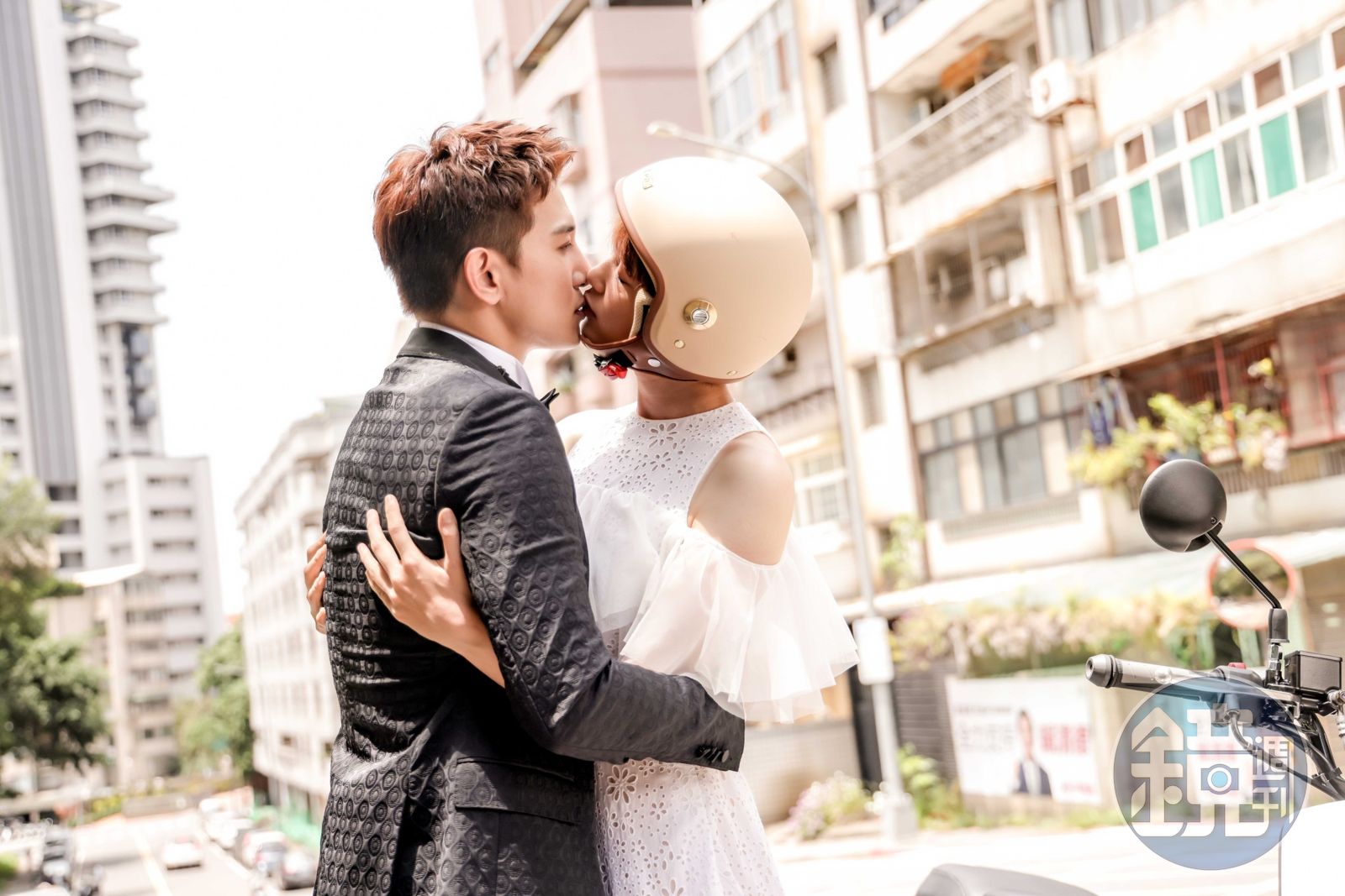 昨拍一場張立昂與劉奕兒穿著結婚禮服騎著摩托車趕去婚禮現場的劇情,劉奕兒說拍起來其實很困難,因為婚紗下擺很蓬,所以上機車前都要有很多準備的步驟,第一就是要先確認婚紗沒有勾到腳跟,或是當如果車子有歪掉需要撐住的時候,腳會不會被婚紗困住,最後她把一大堆蓬蓬的紗一把抓住壓在屁股下,才有辦法呈現英雄式往前衝的感覺,但當張立昂一直騎車往前衝,劉奕兒則笑說要裝帥氣不怕的樣子,其實內心還挺怕的。
