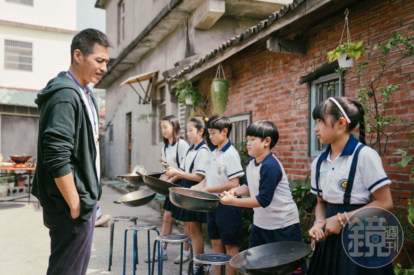 為贏得料理大賽,這群不懂下廚的孩子們,趕緊求助飾演翰旻父親的藍正龍幫他們進行廚藝特訓,藍正龍笑說:「跟小演員們相處就像朋友一樣,看到這幾個小朋友湊在一起,研究怎麼煮會比較有趣,是很單純的快樂。」他也分享跟小朋友演戲,撇步就是不要讓孩子覺得在工作,像是劇中有場烤肉趴踢,現場真的擺出烤肉架讓藍正龍帶著孩子們邊烤邊演,氣氛相當歡樂。