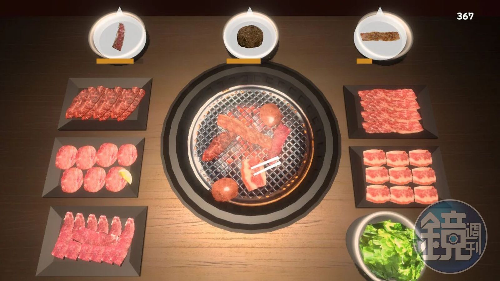《燒肉模擬器》最早是讓玩家體驗現實生活去吃一人燒肉的遊戲,遊戲內的肉類種類品項豐富,例如仙臺牛舌(GyuTan)、上等牛小排薄片(Jo-Karubi)、烤牛排骨(Karubi)都有。把肉放在烤網時要注意時間、火候,適時翻面避免把肉烤焦;烤成功後、沾上醬料享用就能獲取分數,如果烤壞沒丟棄又吃下肚則會被扣分。