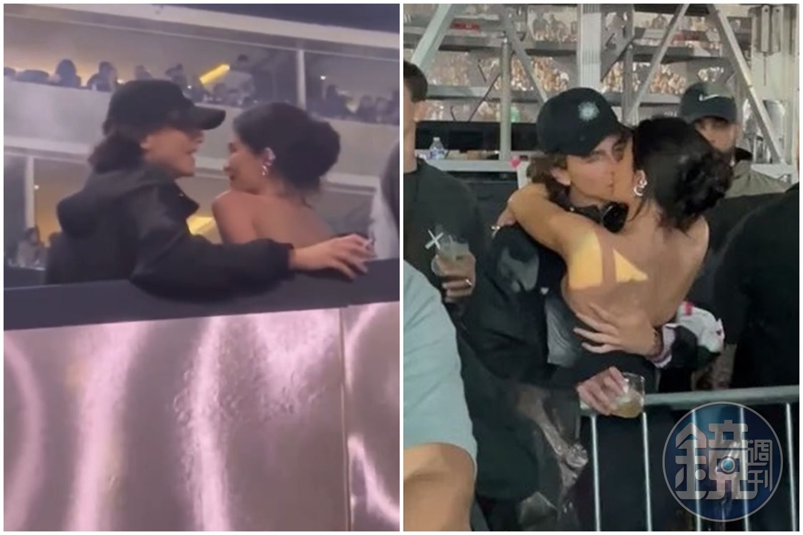 提摩西夏勒梅在演唱會上數度激吻凱莉珍娜,且似乎刻意對著狗仔鏡頭放閃。(翻攝自推特)發布時間:2023.09.06 16:54 臺北時間