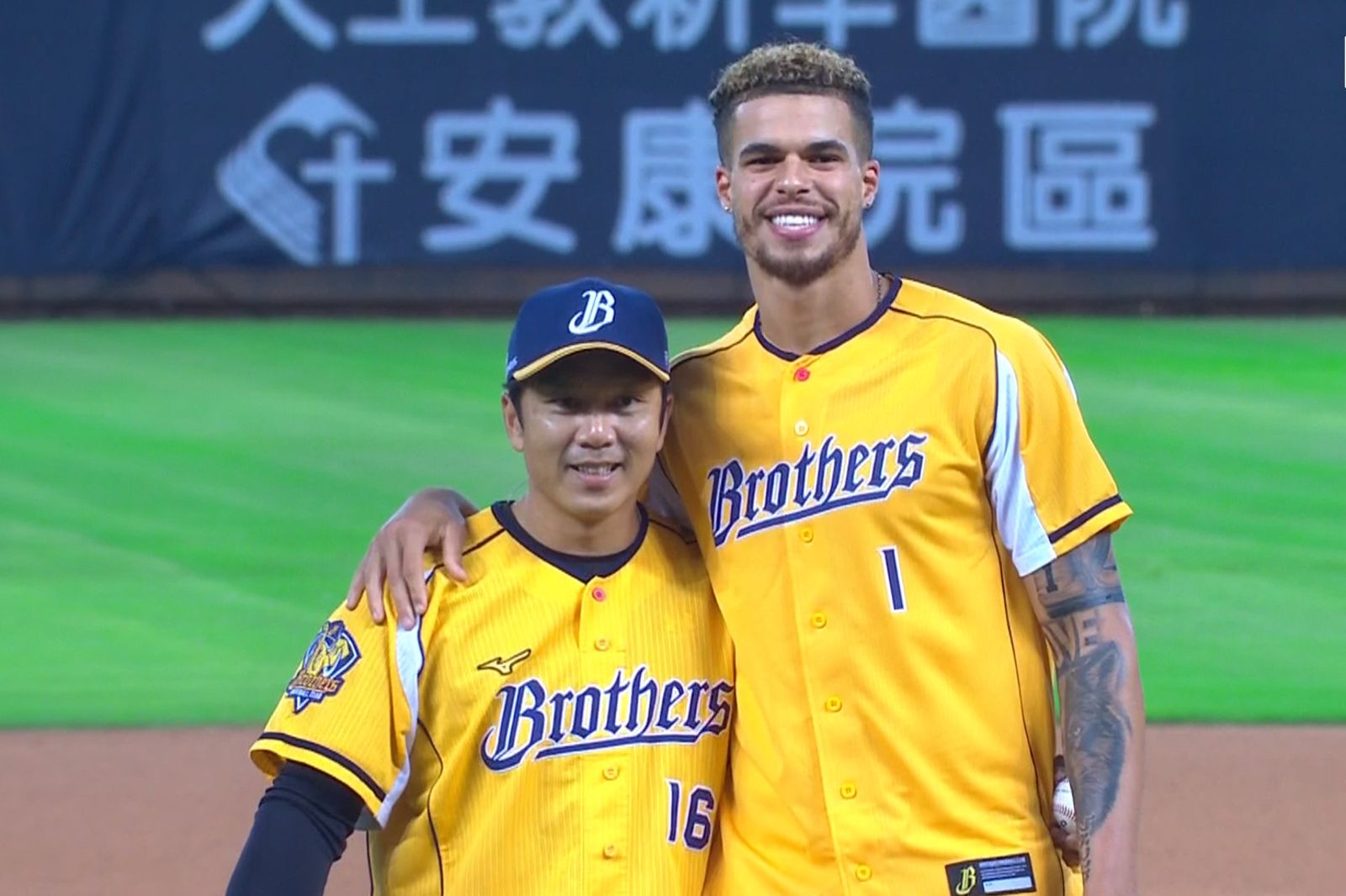 只是小波特開球球握太緊、也有些用力過猛,投了個「挖地瓜」、在本壘板前落地。為小波特接捕的是黃衫軍老將「周董」周思齊,周思齊透露自己也是粉絲,特別準備小波特的球衣請他簽名。