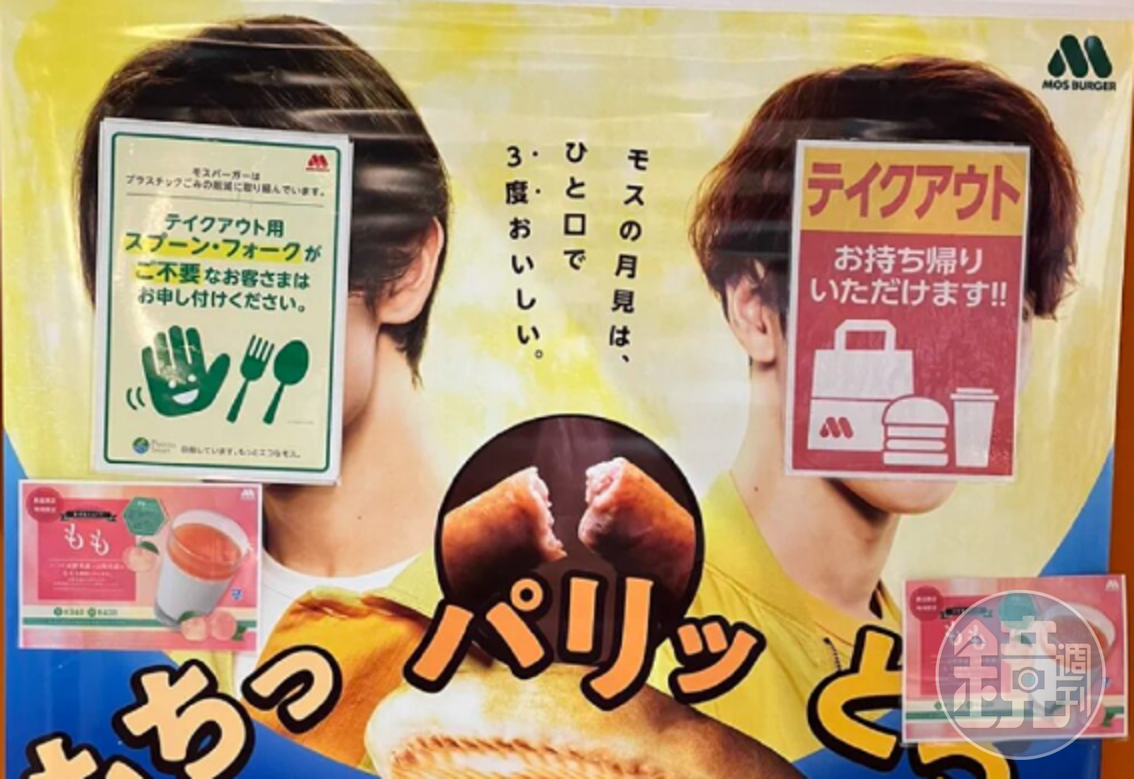 粉絲拍下日本某摩斯店內的海報,渡邊翔太、Raul的臉被刻意擋住。(翻攝推特@the_audience)