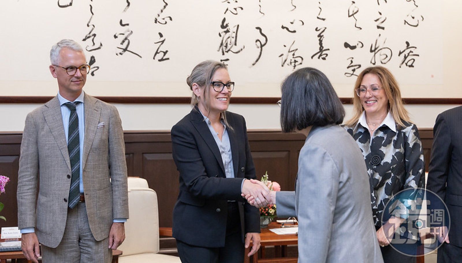 蔡英文下午在總統府接見郝愷悌一行時,先代表台灣人民誠摯歡迎她率團來台,蔡英文說,2016年11月,郝愷悌曾以州參議員的身分來訪,這將近7年來,台灣和亞利桑納州持續深化夥伴關係。尤其台積電在亞利桑納州的鳳凰城設廠,台灣和美國透過這項合作案,不僅帶動在地產業的發展,也能共同打造更安全、更具韌性的供應鏈。