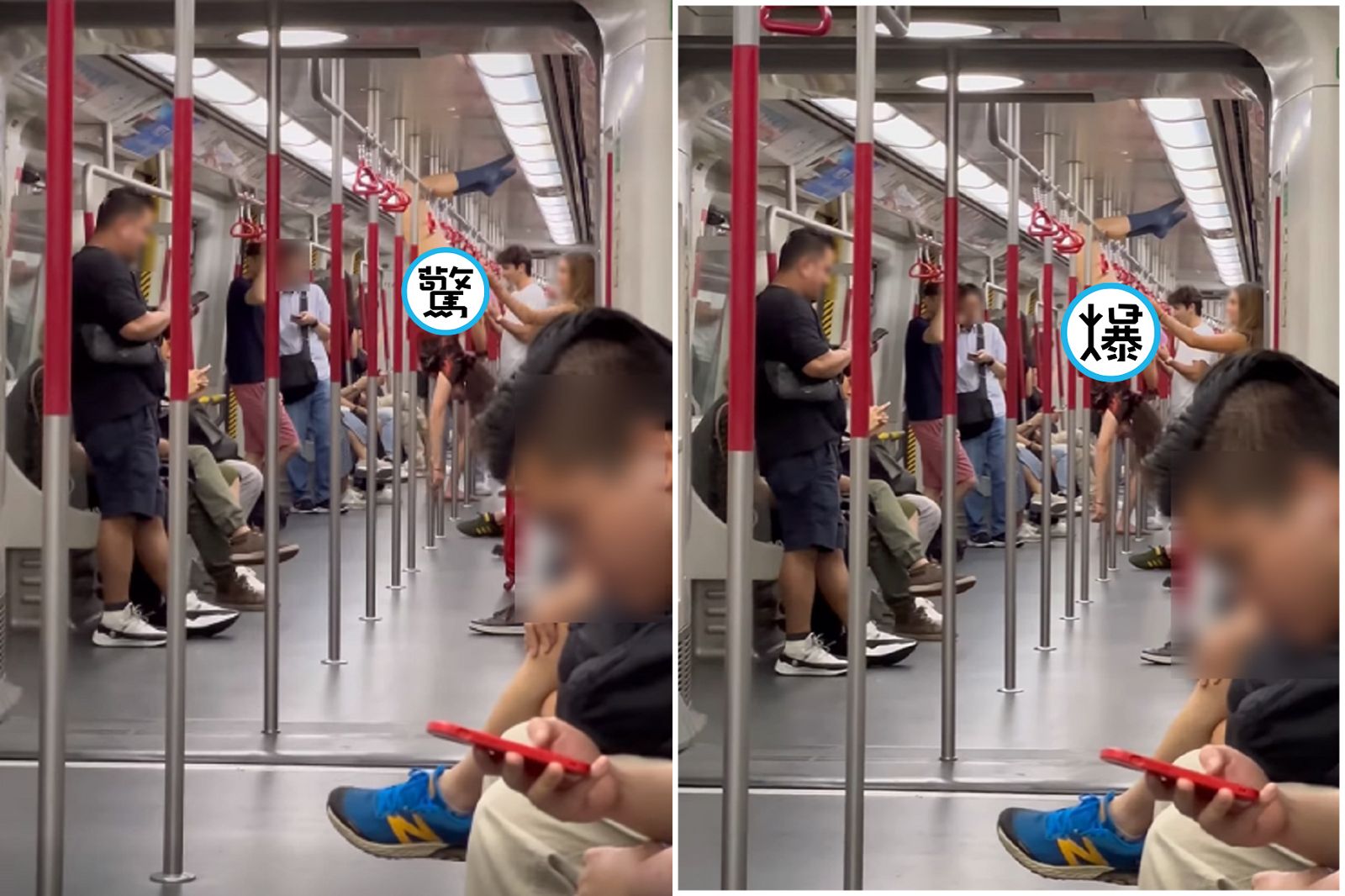 據悉事發在香港地鐵東涌線車廂上,當時這名外籍女子被拍到,把地鐵車廂當成健身房,當場練體操,倒掛在手把欄杆上。由於女子穿裙裝,因此她一倒掛,也當場露出蜜桃臀,春光外洩,她的好友一度感到尷尬,還幫她蓋裙子試圖遮蔽。至於其他乘客,雖然看到這驚人的一幕,但大多都不忍直視,只是低頭滑手機。【看影片由此進】