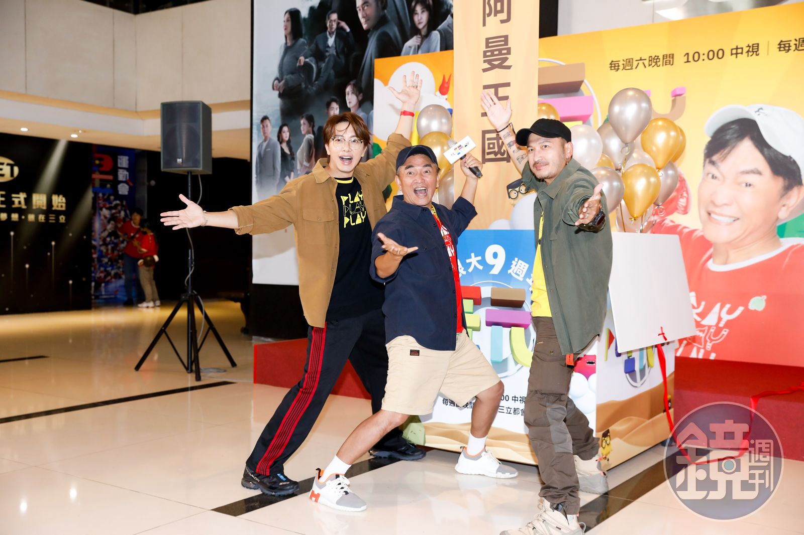 坤達(左起)、吳宗憲、KID出席《綜藝玩很大》9週年記者會。發布時間:2023.10.27 15:19 臺北時間