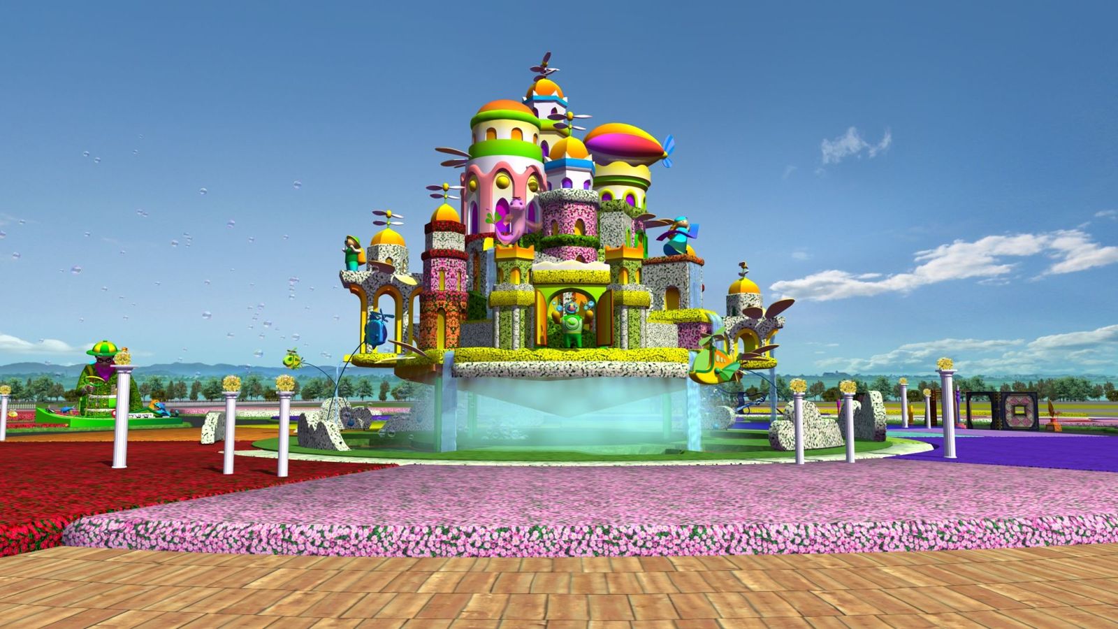 今年以「自然生態、農業發展、人文智慧」等在地元素為設計主軸,描繪花都3大守護神,呼應新社為真實版的夢想國度;並規劃4座創意主題展區,包含入口迎賓的彩虹七線、融入地方編織及藍染的工藝女神、以建造白冷圳的工程師磯田先生為形象設計的生態勇者、代表智慧農業的大地巨人。