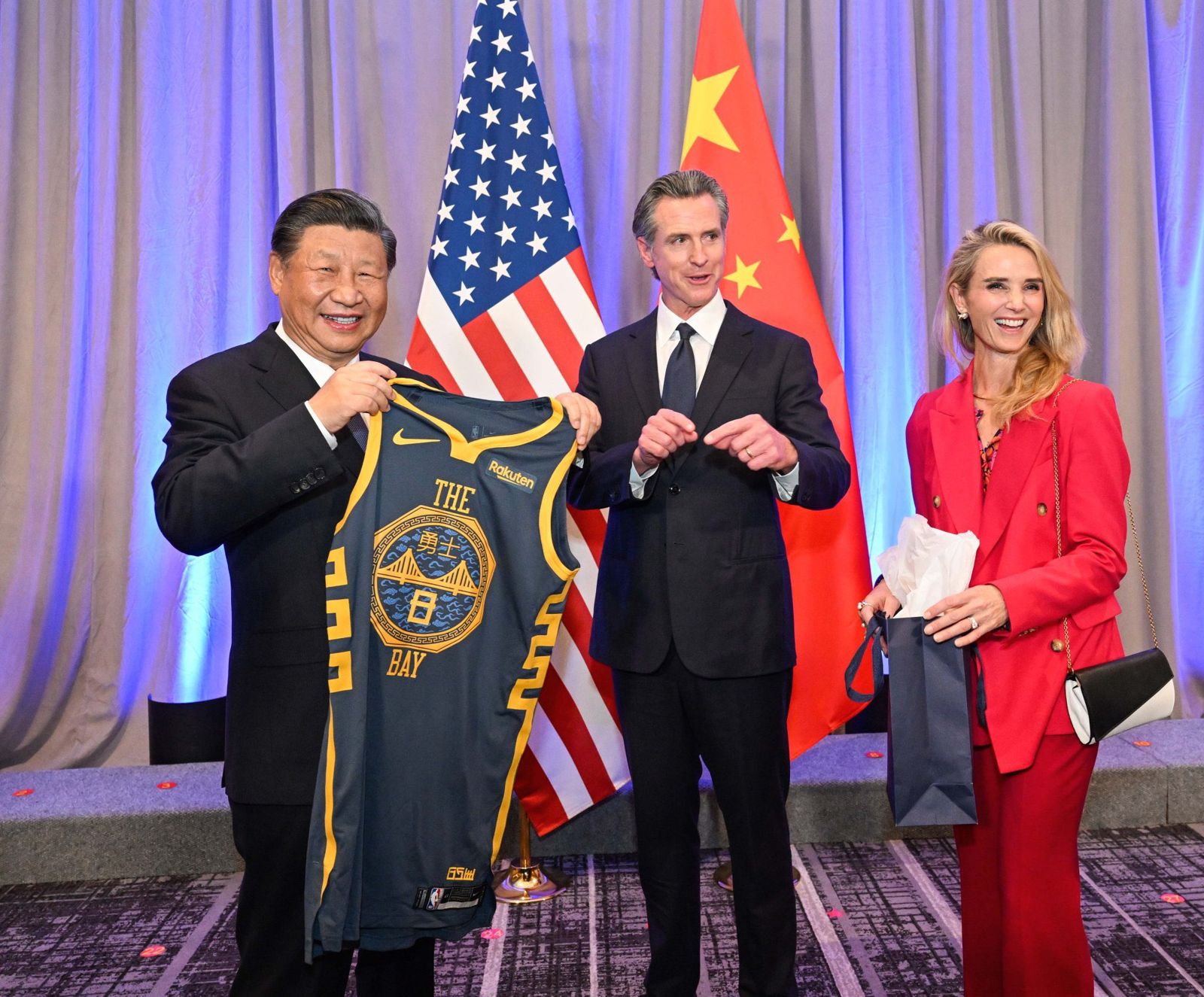 另一方面,這次全場最大的焦點,就屬中國國家主席習近平。15日他先與美國總統拜登會面,隨後傍晚參加由美國友好團體聯合舉行的歡迎宴會,加州州長紐森(Gavin Newsom)還送給習近平一件金州勇士隊球衣。習近平收到球衣後,相當開心,再度展現「維尼笑」,他還開心地說:「我穿上這件衣服以後,也會變得這麼神勇嗎?」紐森則回應:「對唷,你是MVP(最有價值球員)!」