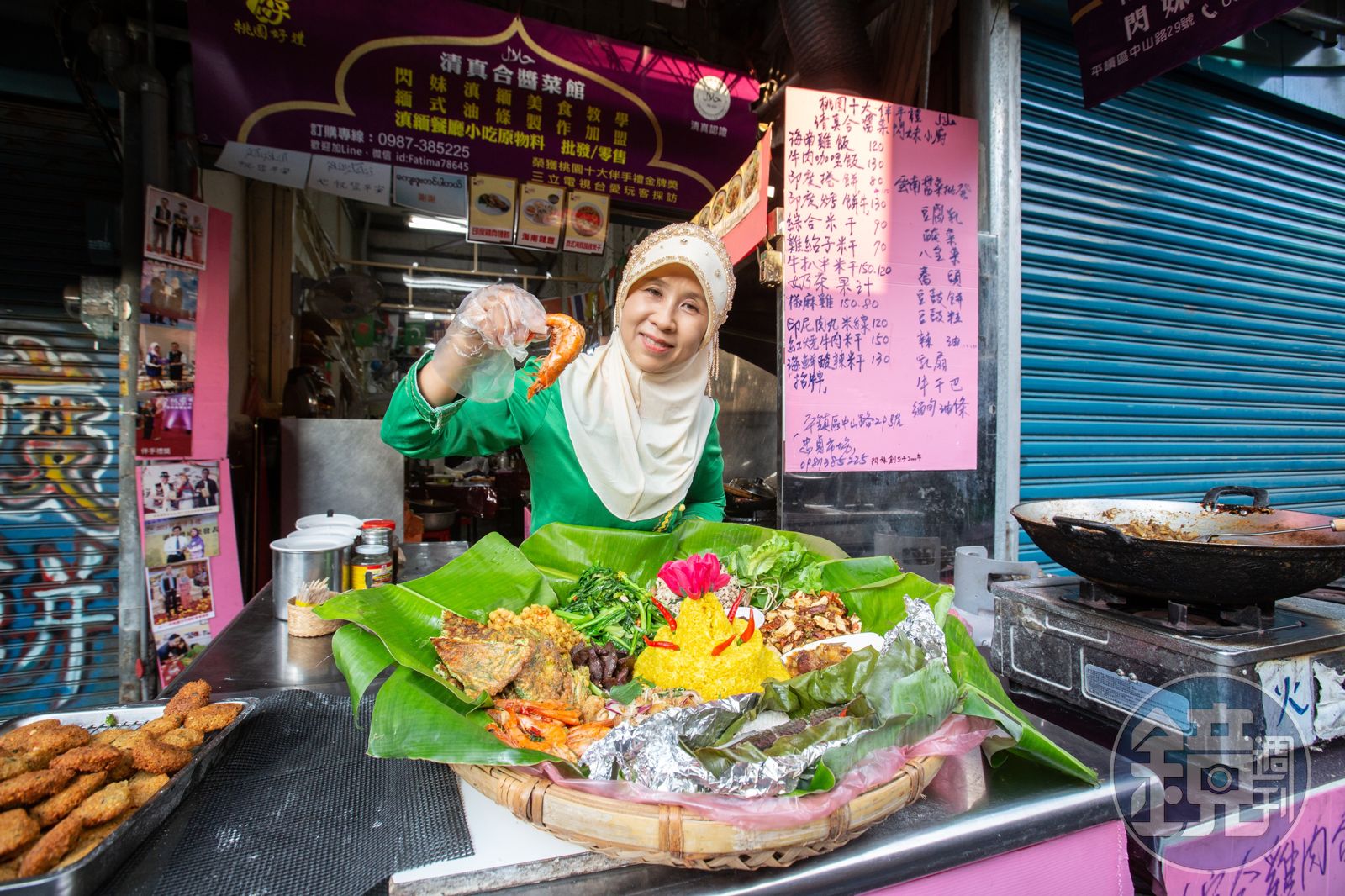 伊斯蘭教徒在台灣吃食選擇相對較少,閃淑娟開業時菜單上原本只有米干,後來越變越多元,海南雞飯、緬甸雞蛋油條、印度捲餅都入列。「很多不同族群的人來,他們吃外國料理,一開始是嘗鮮,待久就會想念熟悉的東西。」閃淑娟感同身受,「很多是自己想吃,看電視、食譜試著做,有調整配方、放我自己做的醬。」連複雜的10人份簸箕飯都在閃妹的小廚房出現,「最多做過300人份。我會看狀況微調口味,像台灣人就要減鹽少辣。」她也接婚宴訂單,「有些人宴客有1、2桌回教桌,請我做外燴,就會有像是龍蝦的大菜。」